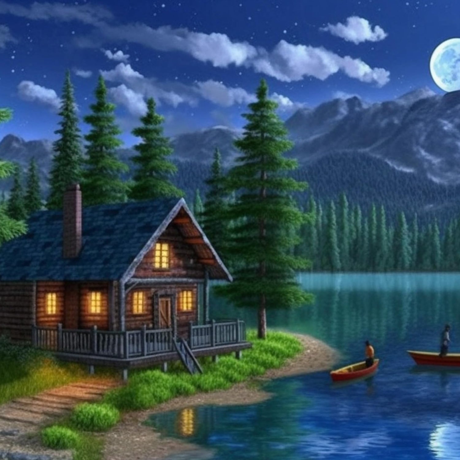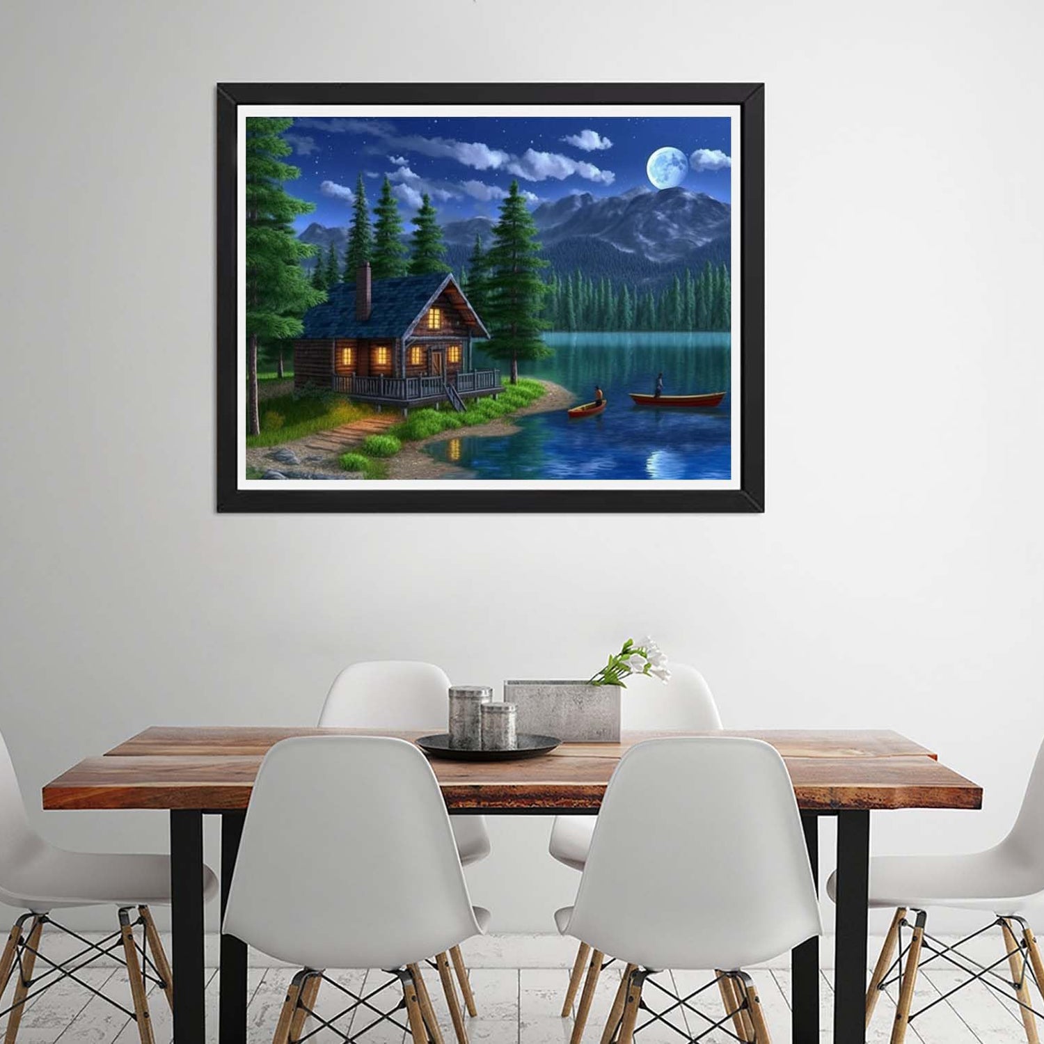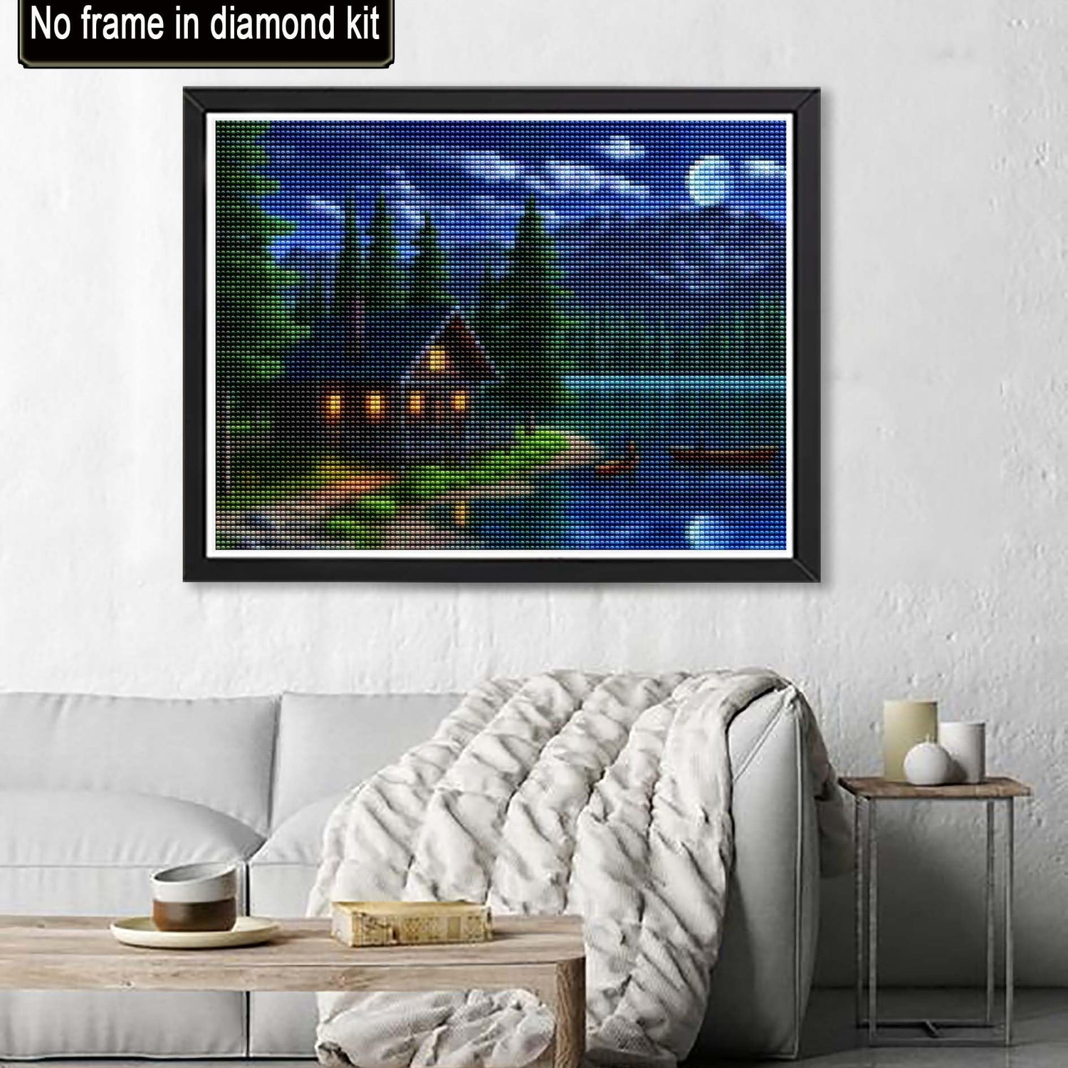 5D Diamond Painting Landscape, Paint with Diamonds DIY Diamond Art Moon Lake Hut, Diymood Painting by Number Kits Full Drill Rhinestone for Home Wall Decor 12x16inch