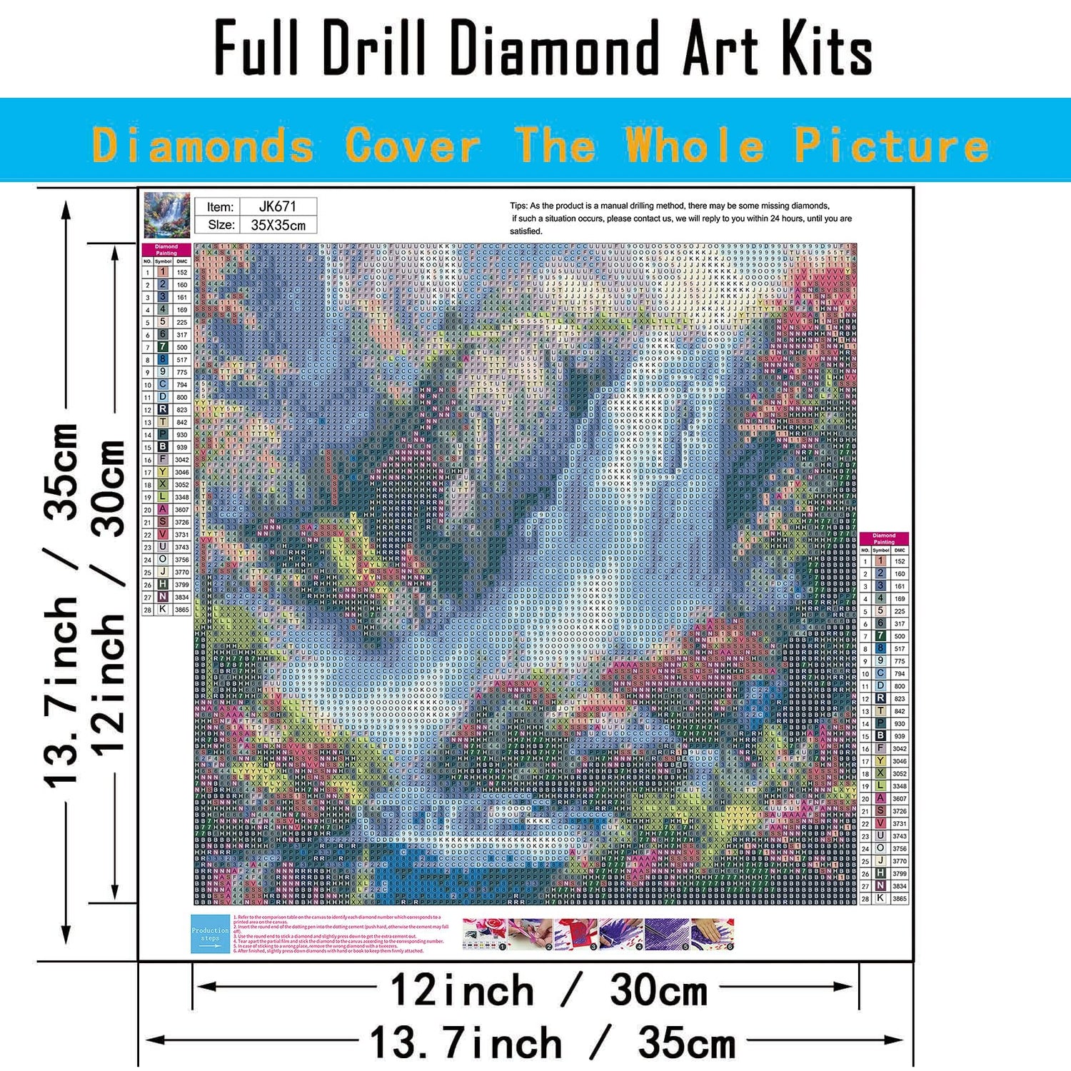 - 【SUPER SPARKLE DIAMONDS】Use good quality canvas,Each diamond dot have 26 facets,5D full round drill dot art for adults with multi-faceted reflection,looks shiny sparkling with light and Proper maintenance can last for many years, not easy to drop.You get about 30% extra beads.(Note:This waterfall gem art kit not include frame)