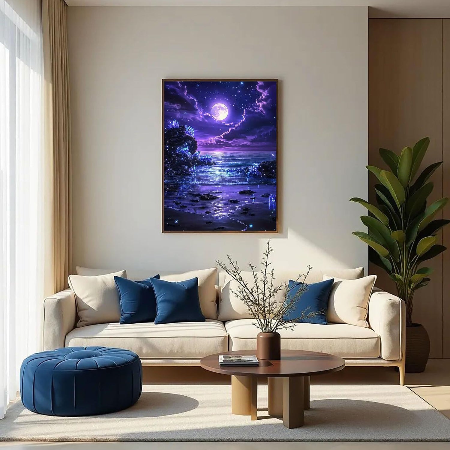 - 【Home Decoration】Diamond art is one of the most popular art decoration of the moment,decorated with this full drill diamond art kits,your bedroom, living room, wall, study, office and other occasions.make your room become more stylish, when you are in such a room when the mood will become happy, at the same time the purple beach scenery diamond painting is also an ideal present, you can use purple moonlight and seaside scenery diamond gem art kits as a birthday present, Thanksgiving present, Christmas present, party present to your friends and family,and they will love this well-prepared present.