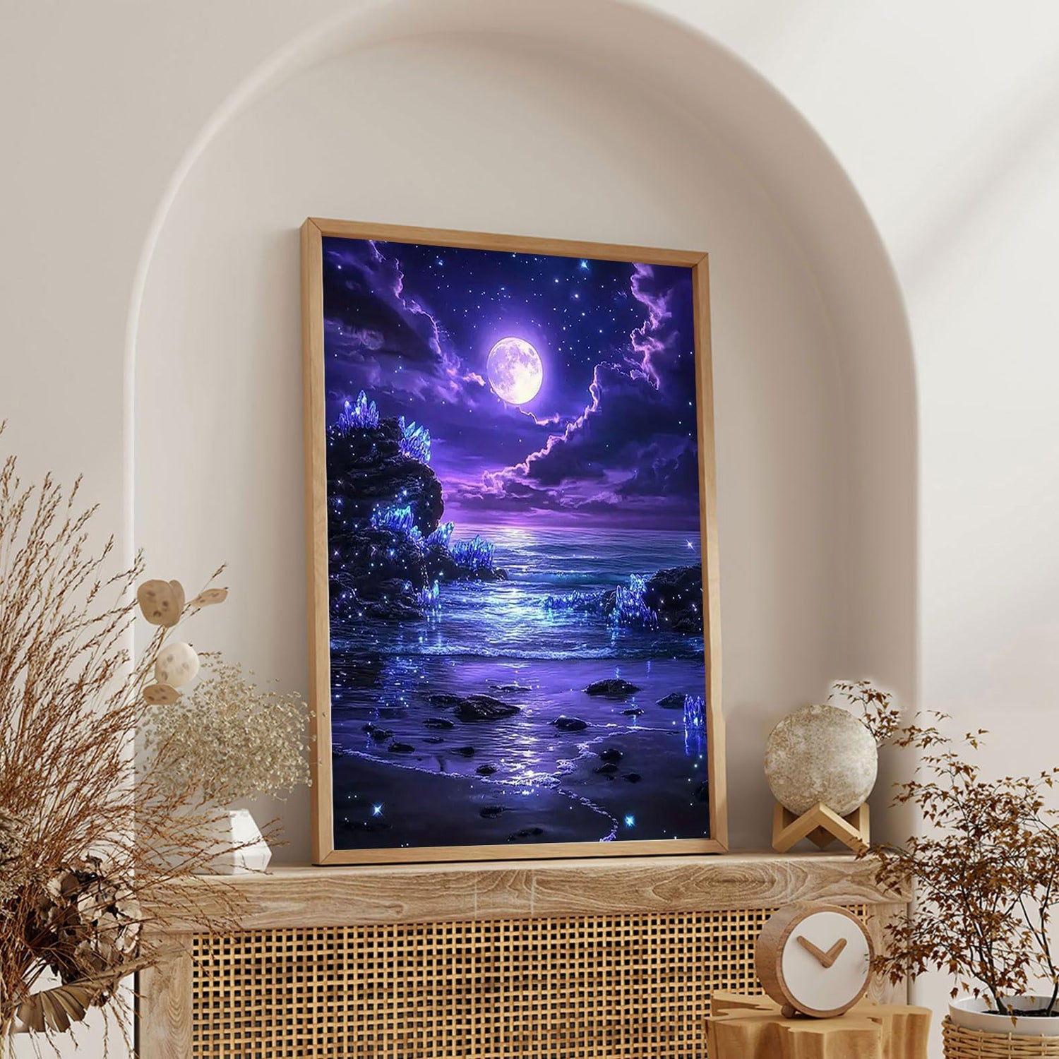- 【More Fun & Relaxing】5D purple full moon diamond art kits is a new craft hobby,During the creation process,DIY purple beach gem art kits can improve hands-on skills, release stress, gain a sense of accomplishment and exercise perseverance, easy-to-understand instructions, even if you are a beginner,this moonlight and seaside diamond painting kits for beginners also easy to complete.It is very rewarding to go finished a purple seaside and full moon diamond painting with your family when you have a break.