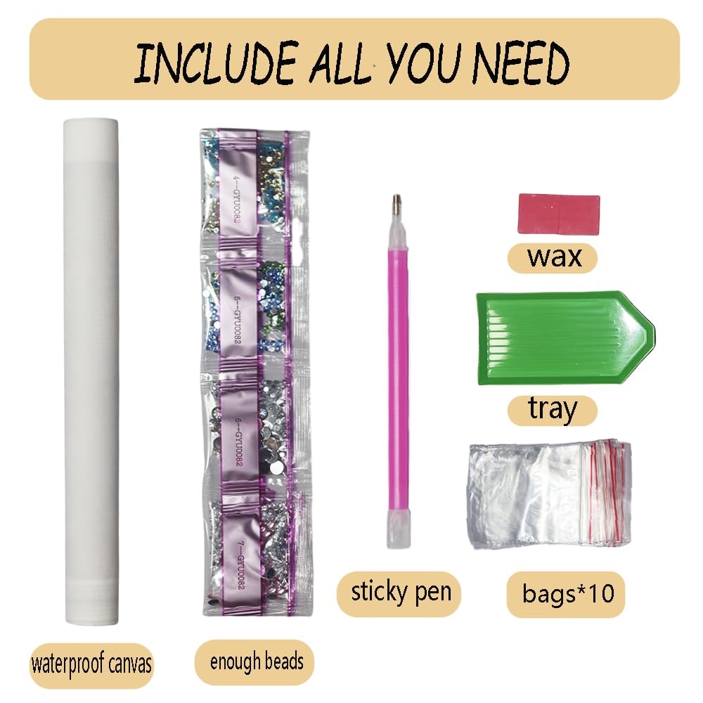 - 【Complete 5D Diamond Art Starter Kit】:1*high definition painting canvas,1*point diamond art pen,1*cube diamond tray,1*red glue clay,10*packaging bags,enough colorful diamonds.We provide an extra 20% beads to ensure that the diamond art can be completed smoothly.