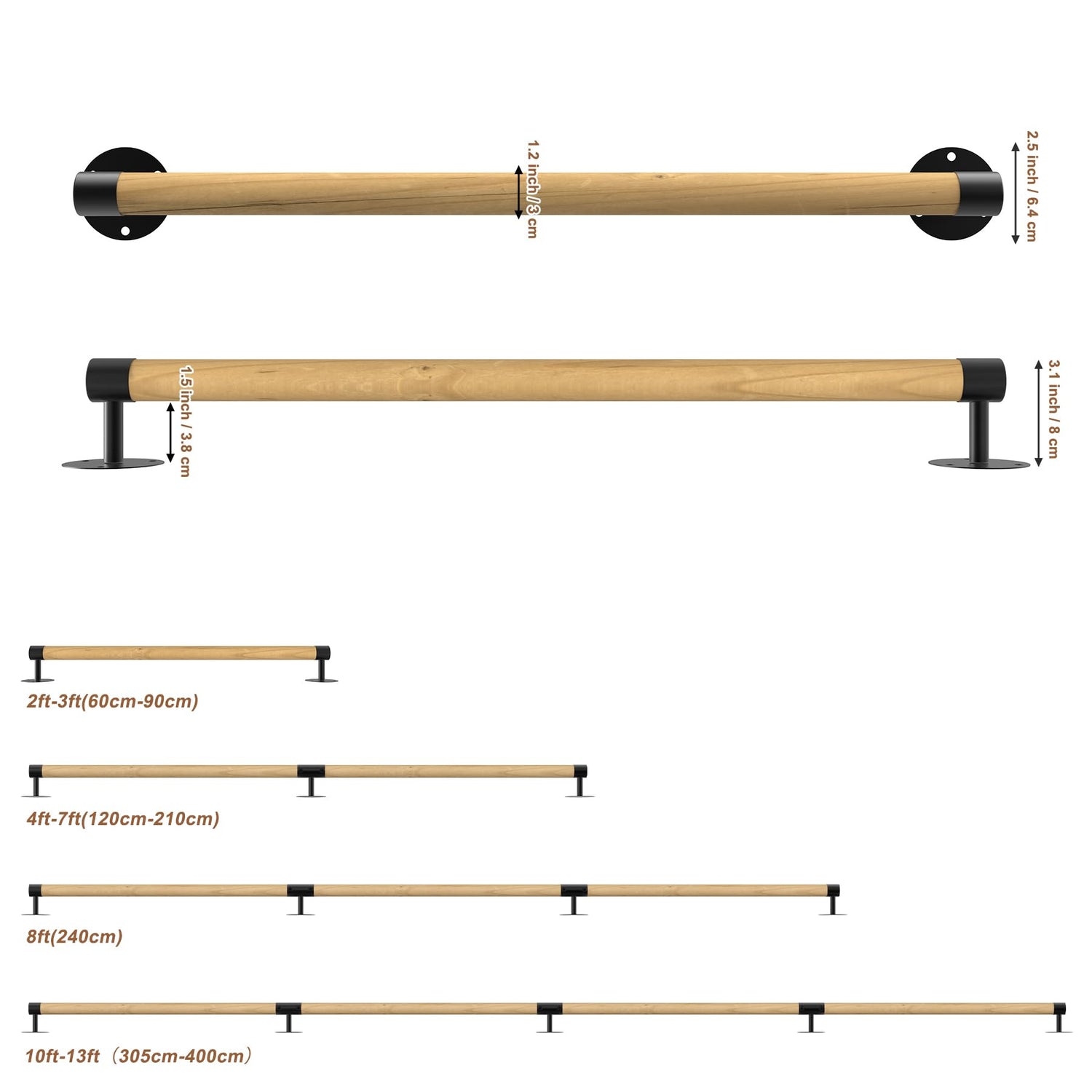 - 【Handrail Size】:Length: 5ft/150cm;2 section;round tube diameter: 1.2in/3cm; Clearance: 3.1in/8cmaway from the wall,tight joints where the sections are joined for a comfortable grasp. We also provide other sizes of handrails for your needs