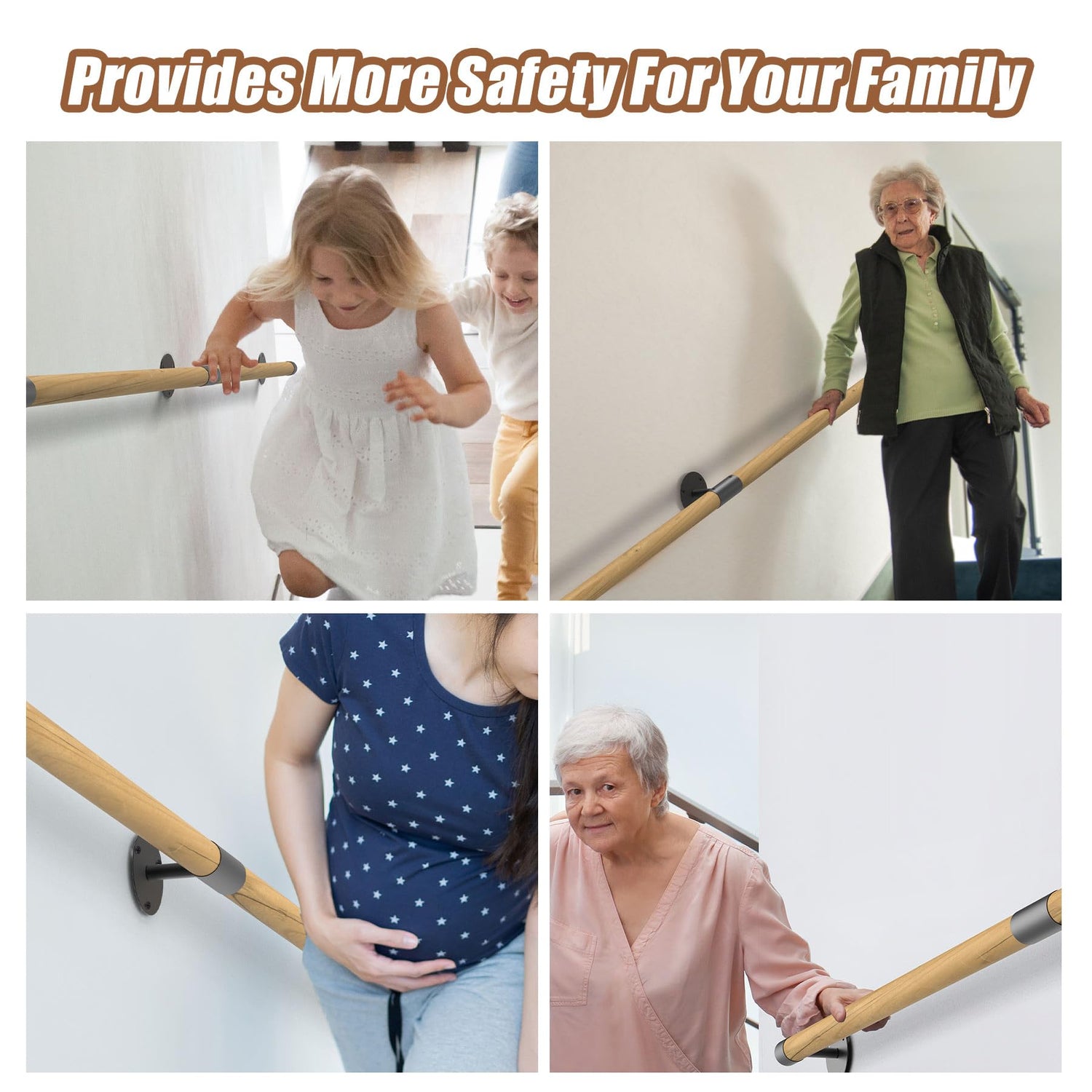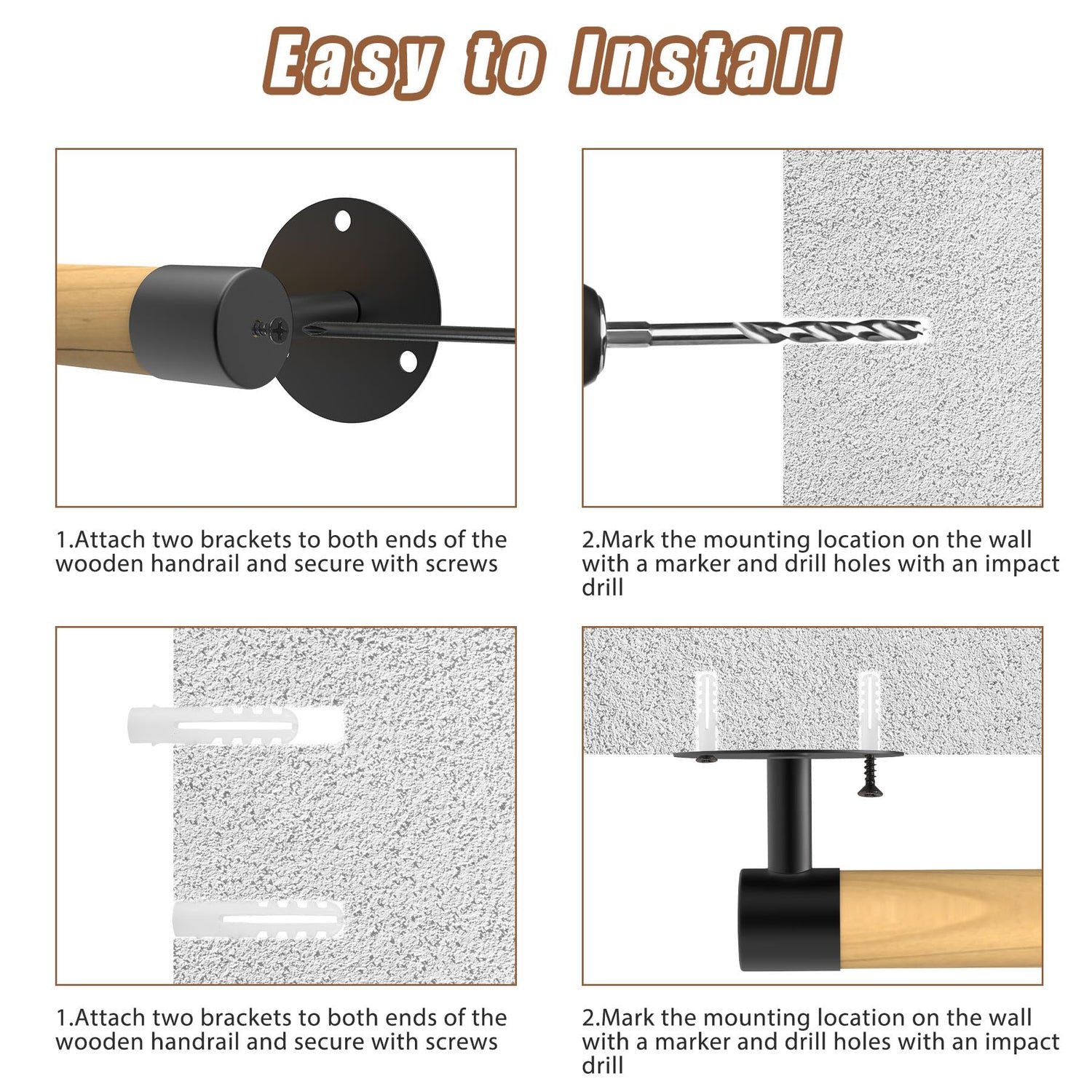 - 【Easy to Install】:The wall-mounted round wood stair handrail has accessories including stainless steel brackets, and screws. Just mark, drill holes, fix brackets and handrails, and the height can be freely adjusted according to your needs.