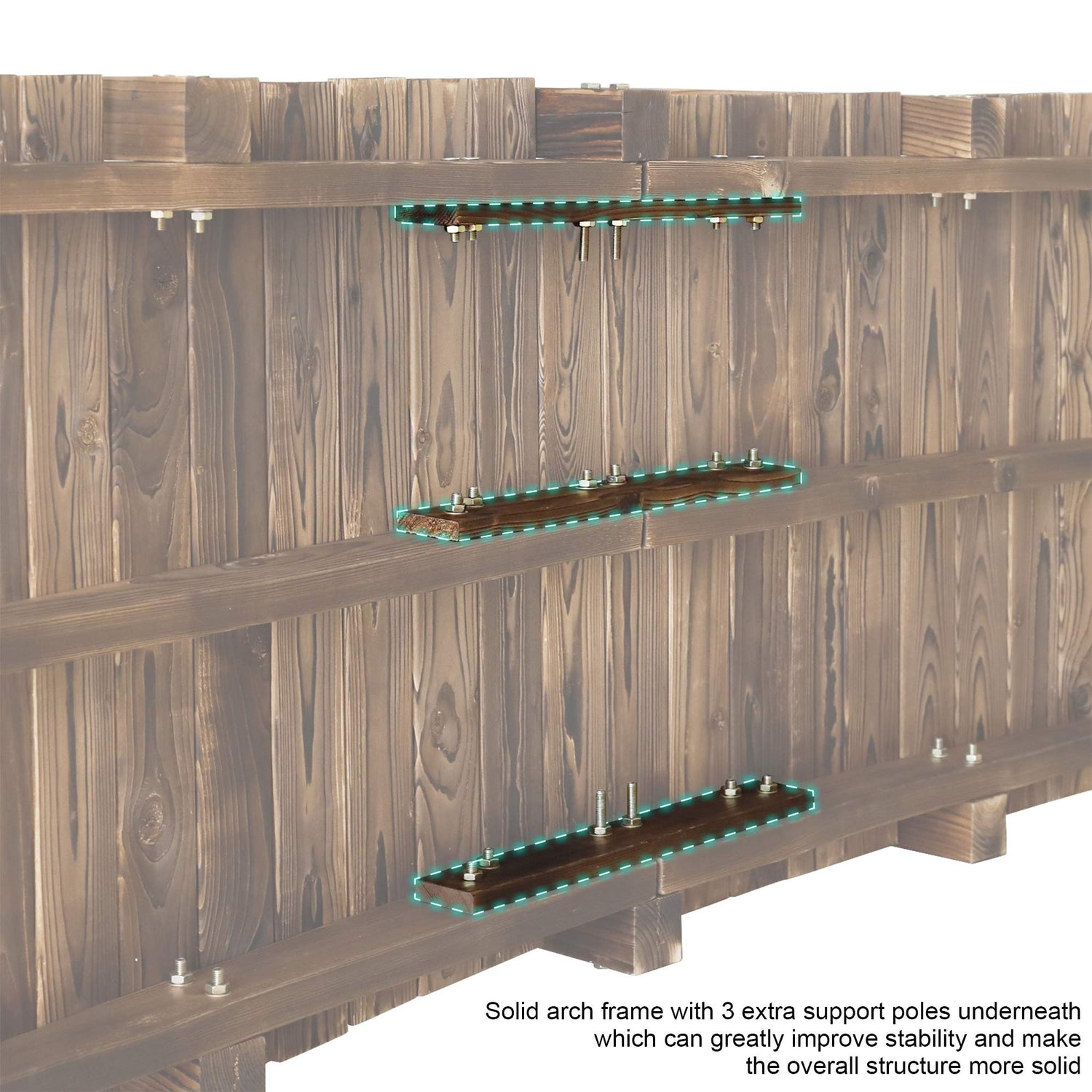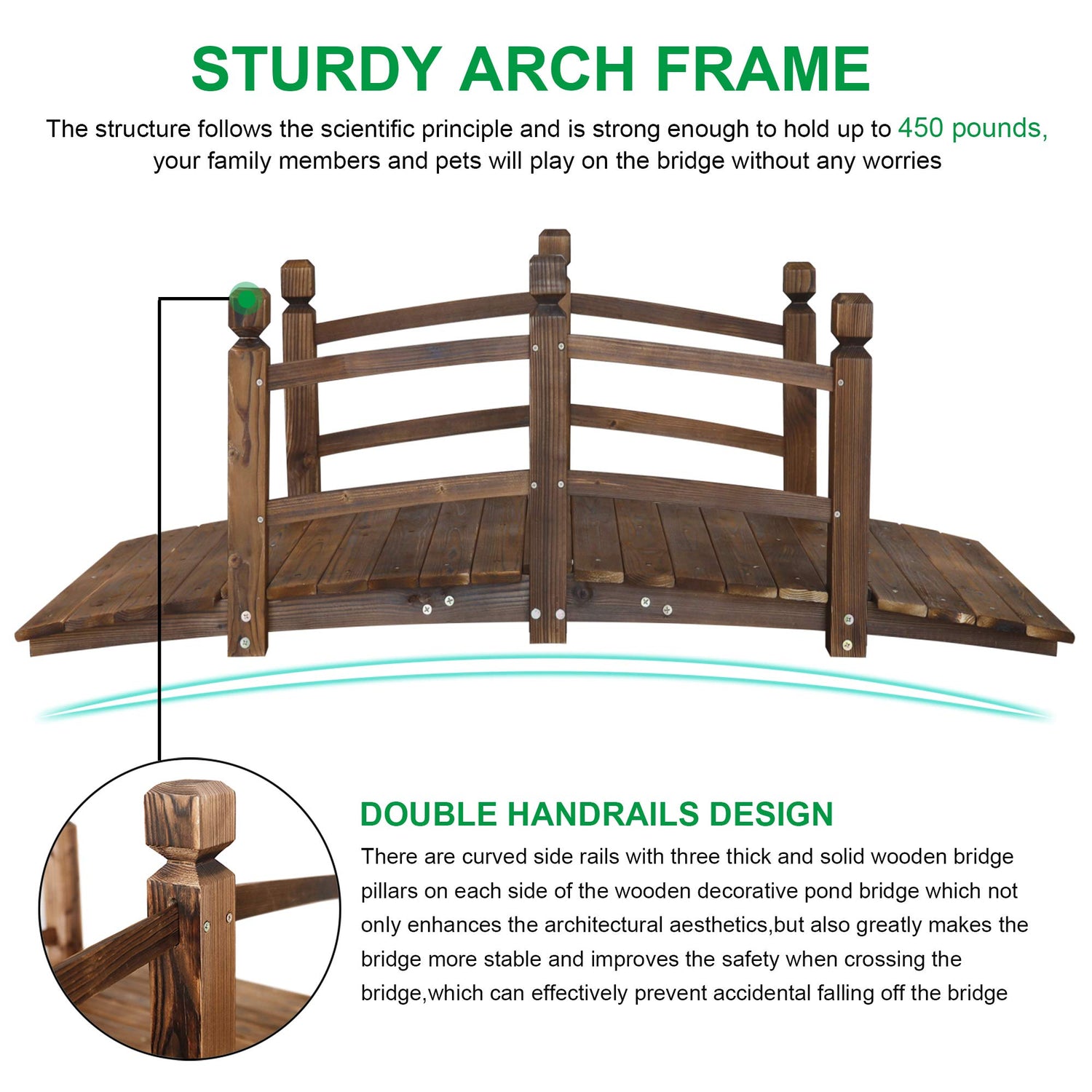 • 【Solid Fir Wood】Different from the ones made of laminate materials,our garden bridge is made of strong and premium fir wood which is sturdy,durable and weather-resistant.0.55" thickness deck is widened and thickened to offer strong weight capacity!Natural wood is eco-environmental and 100% safe for your kids and pets!The fir wood has been carbonized to resist cracking,splitting,chipping and peeling.Carbonized treatment makes the bridge can be used outdoors for a long time and keep intact well