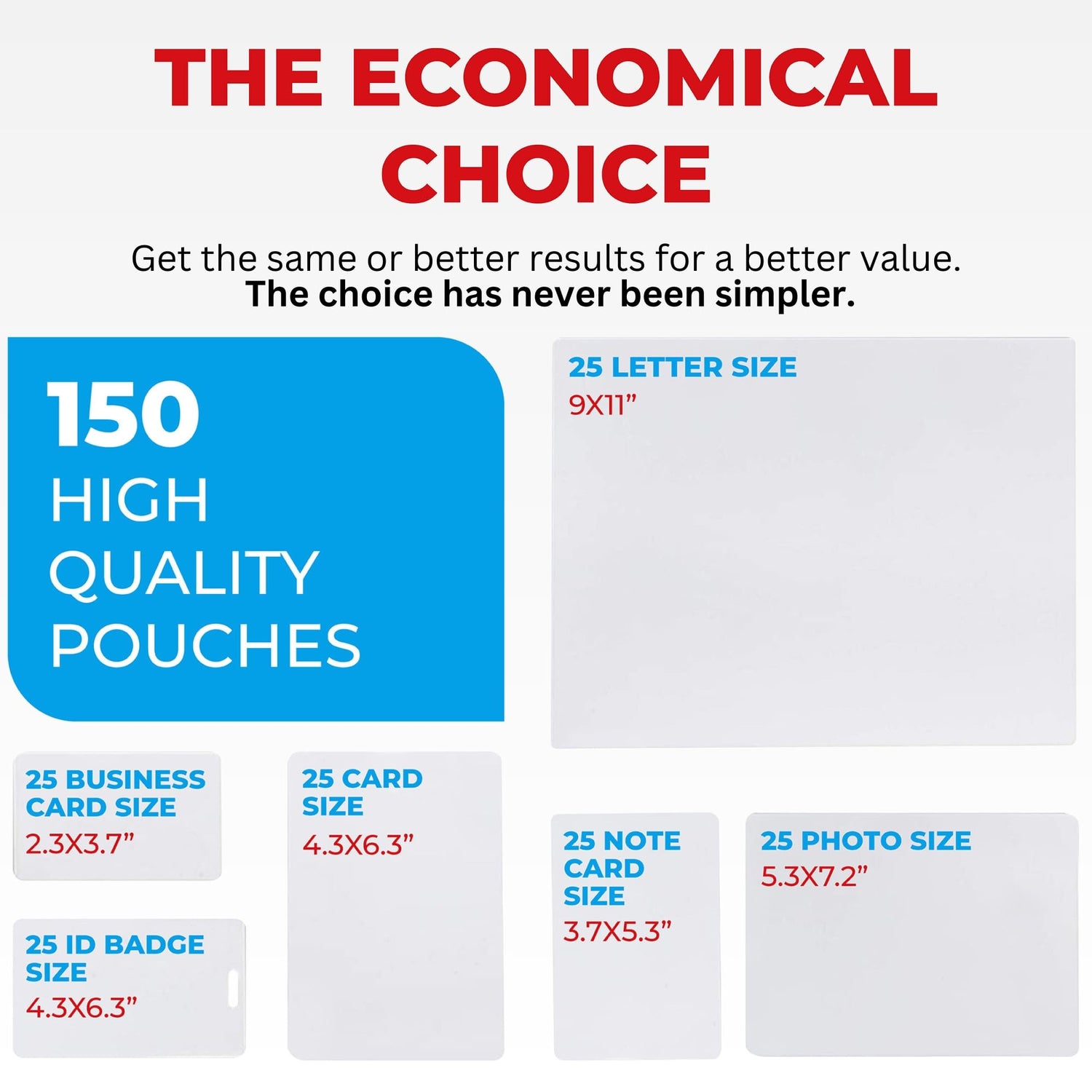 5MIL Thermal Laminating Sheets (150 Count) Letter, Photo, Card, Notecard, ID Badge and Business Card Sizes, Laminating Pouches Compatible with Laminators, Crystal Clear Laminated Finish
