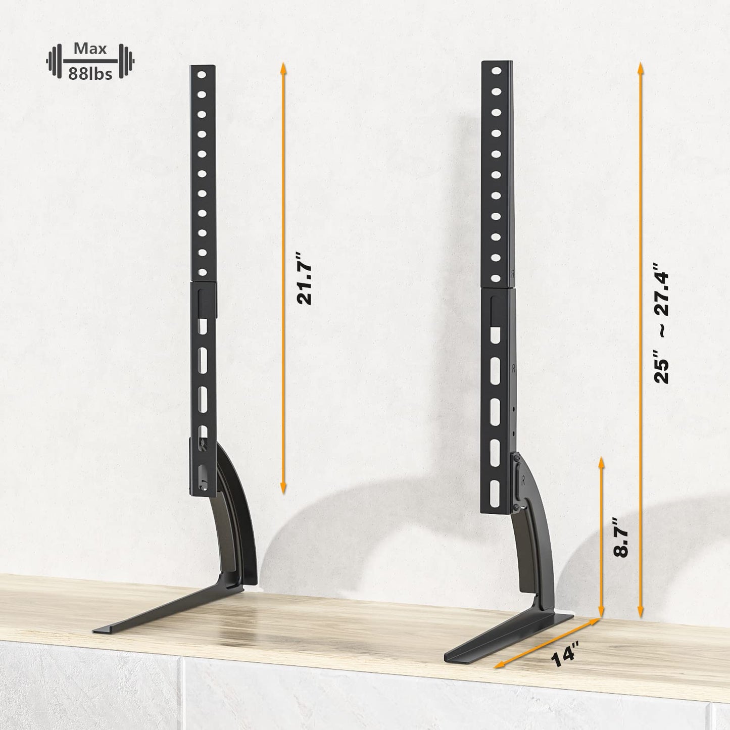 - 🍃【HEIGHT ADJUSTABLE】--This tv base stand has 3 levels height adjustments from 25" to 27.4" to make your TV always at eye level for better view. Middle section unscrews to form a perfect solution for small TV.