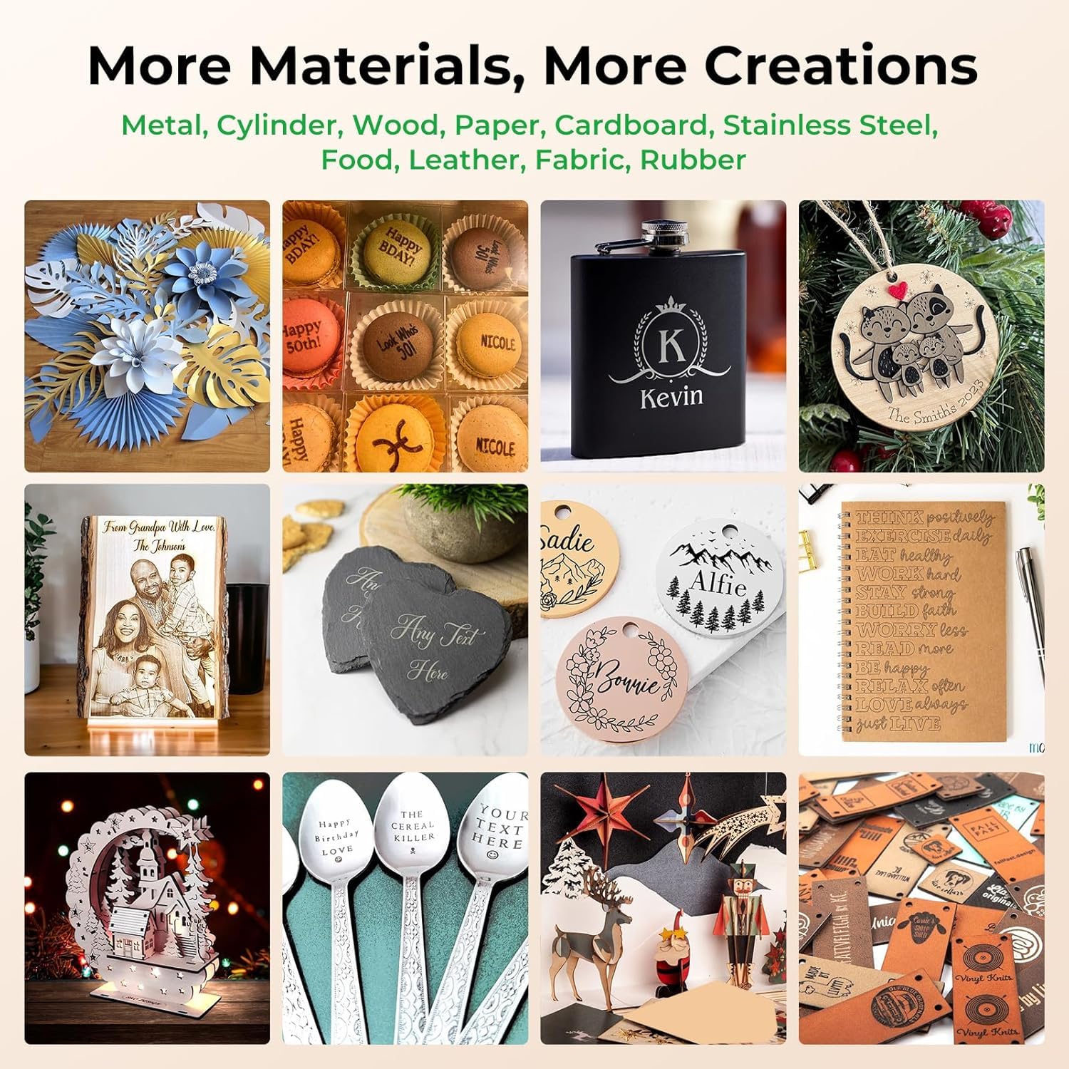 • 【Great for Cutting Beginners】Upgrade 5W engraving with 72W machine output power, laser class 4, the laser engraver machine cut 3mm basswood at one pass and engrave most products. With the advantages of quick focusing, accurate positioning and one-button controlling, it is friendly for beginners who love engraving.