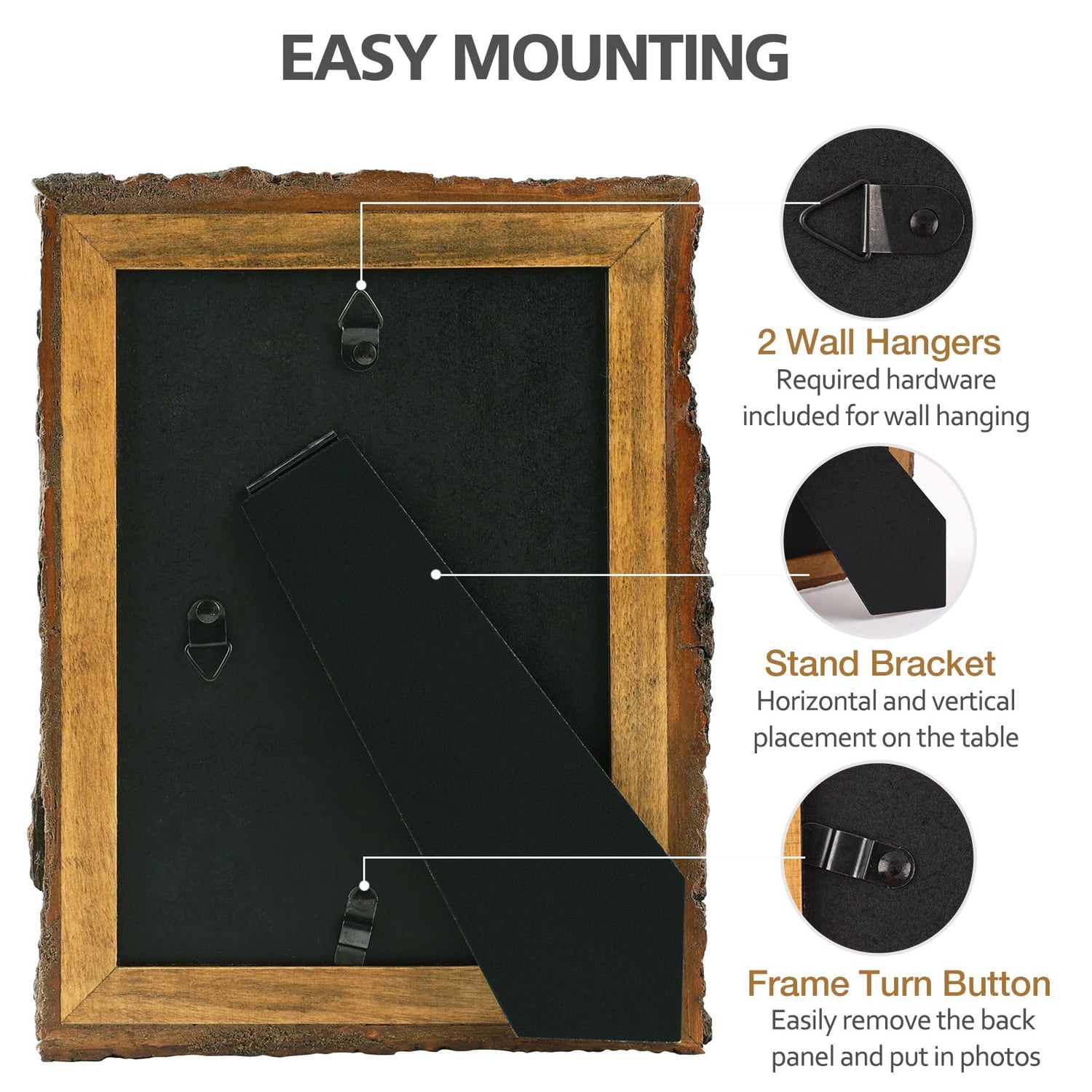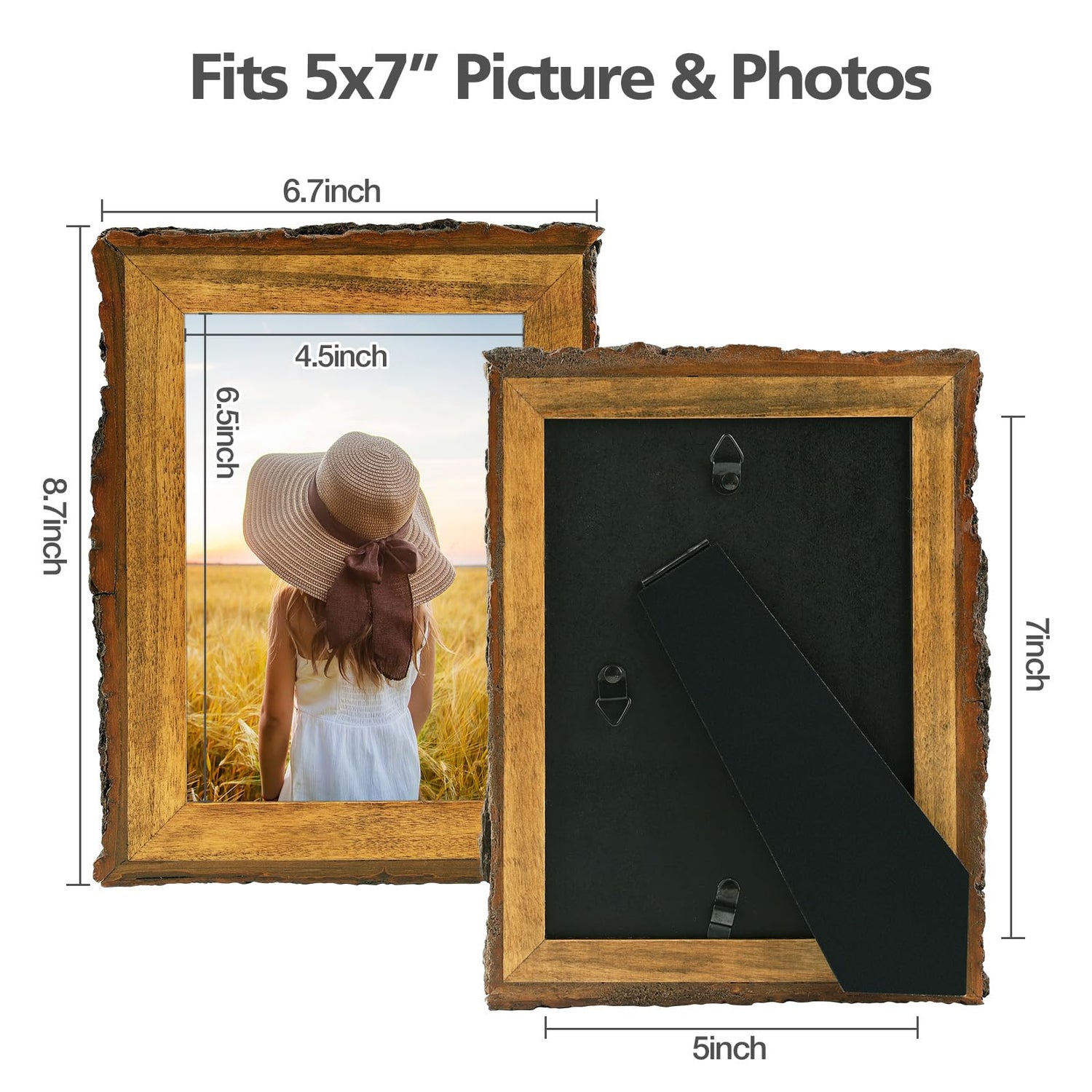 - Solid Wood Material: This Rustic Brown 5X7 Picture Frame Is Made Of Solid Wood, Not Easily Deformed, Built To Last. The Surrounding Of The Rustic Frames Are Made Of Natural Bark Edges. The Tempered Glass With High Clarity, And Mdf Backboard Of The Wood Frame Will Protect Your Precious Photos From Damage And , Keeping It New For Years. Fit Your Lovely Picture Sizes 5"X7" Without Mat