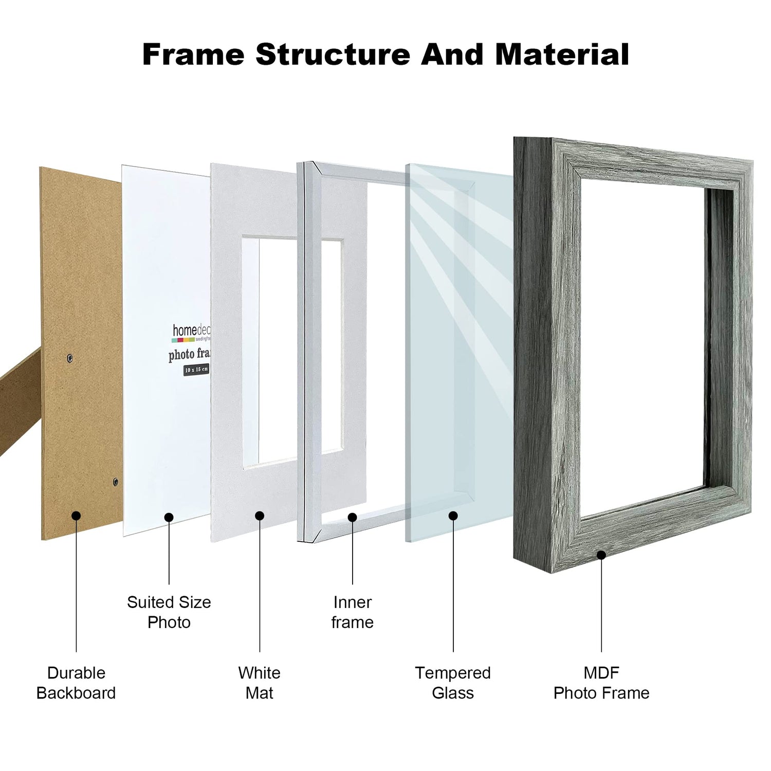 - 【Premium and Clear】This picture frame is made of MDF all-inclusive lines, equipped with a 1.8mm edging tempered glass baffle and 1.5mm cool white mat, which is high-quality, sturdy, durable, and can display pictures more clearly.