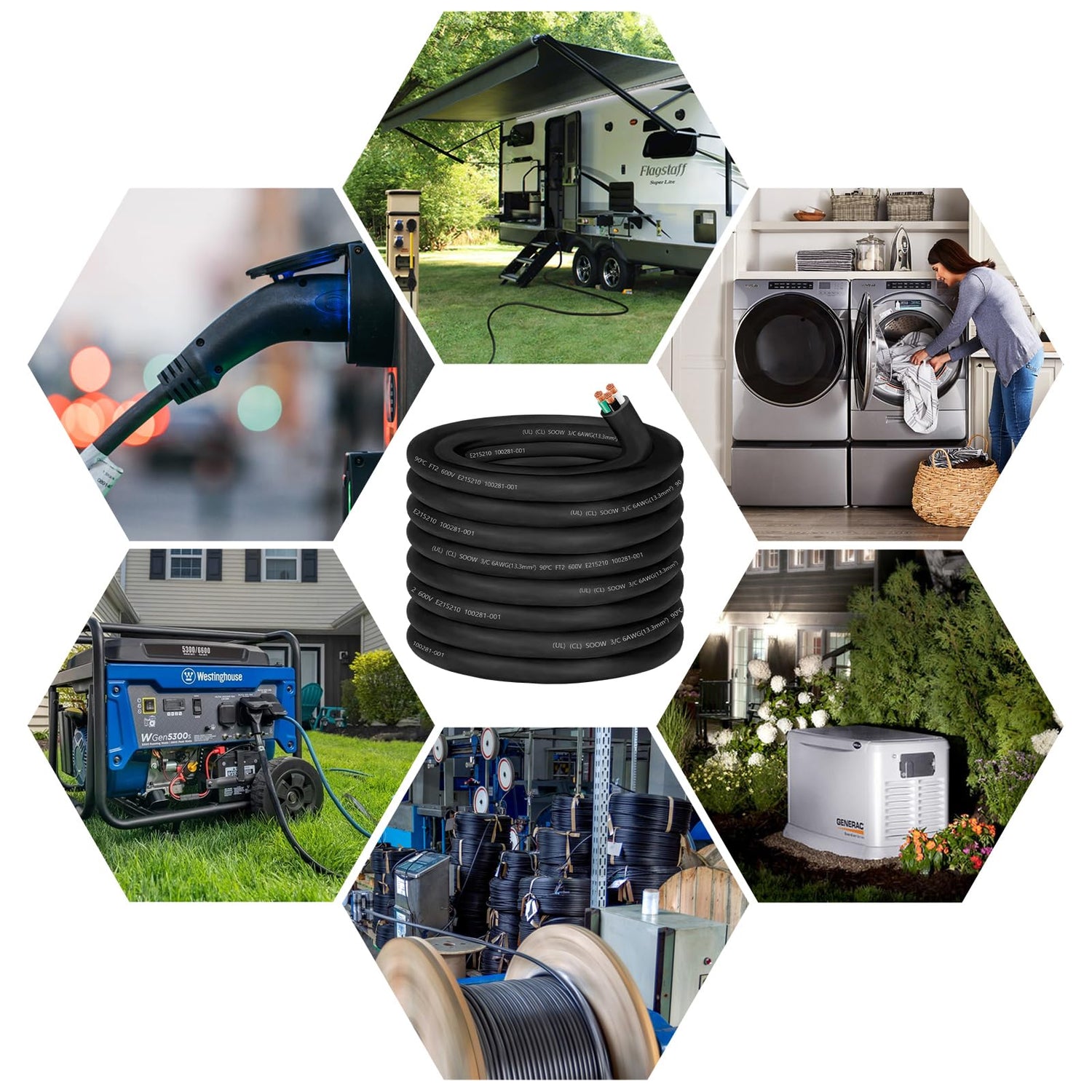- Water and oil resistant: The 600V 6 AWG SOOW wire 6/3 6 Gauge 3 conductor SOOW electric wire (SOOW-Service, Oil, and Water Resistant) is designed to withstand harsh conditions, perfect for industrial/outdoor/commercial use,including NEMA 14-50 welder machine/power generator/RV outlet box/electric car charger/fryer/dryer.