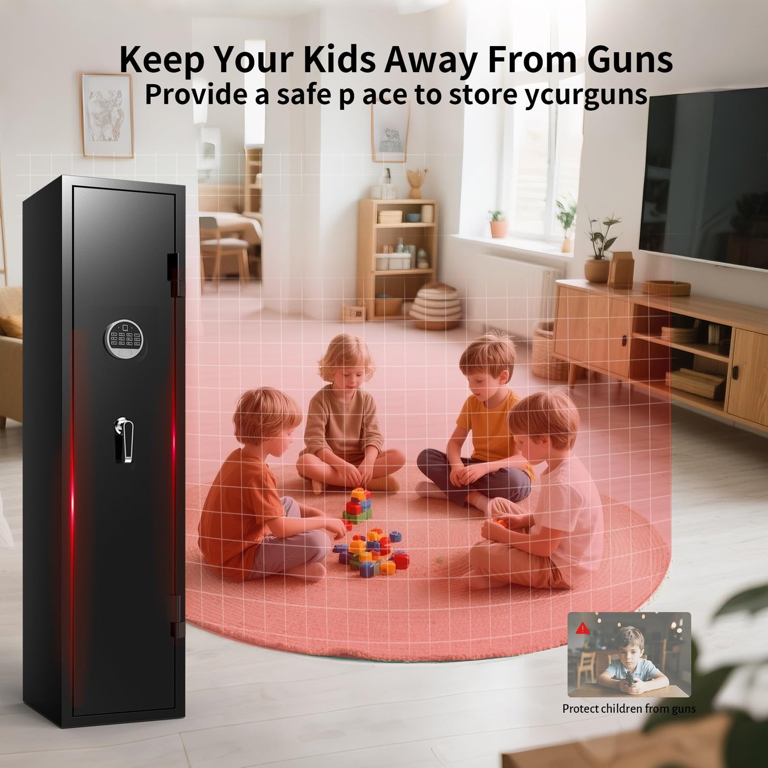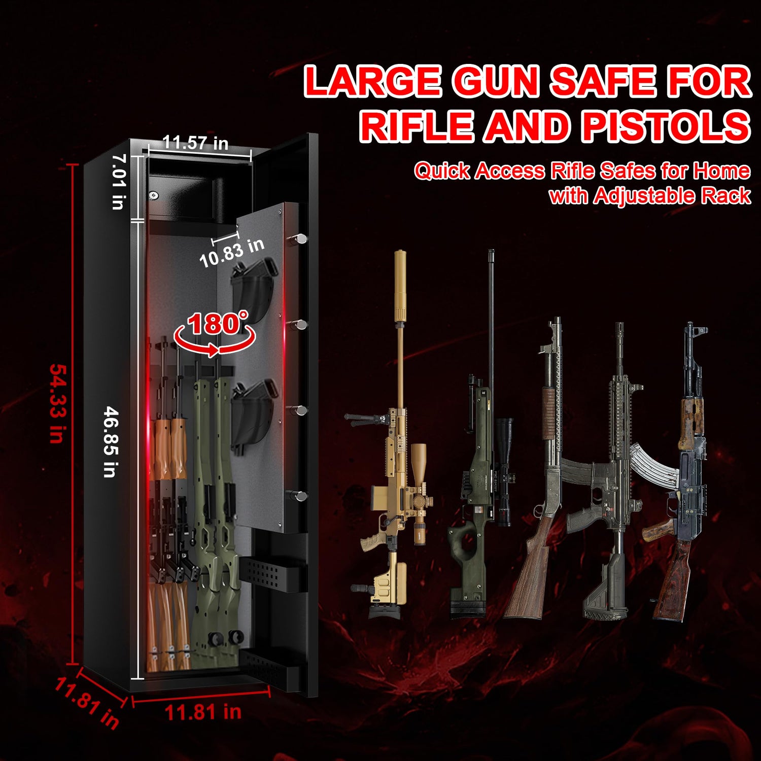 6-8 Gun Safe, Gun Safe for Rifles and Pistols, Gun Locker, Rifle safes for Home,Metal Gun Cabinet for Rifles and Shotguns, Dual Alarm & Mute System, Quick Access, No Assembly Required
