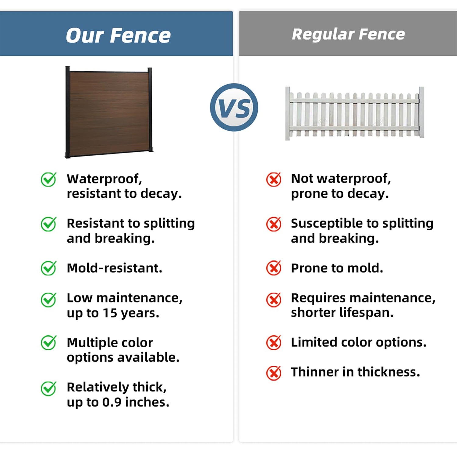 6 Ft×6 Ft Garden Privacy Fence, Outdoor Wood Plastic Composite Fence Panel, Waterproof Screen No Dig Adjustable Weatherproof, Complete Kit Without Post, Brown
