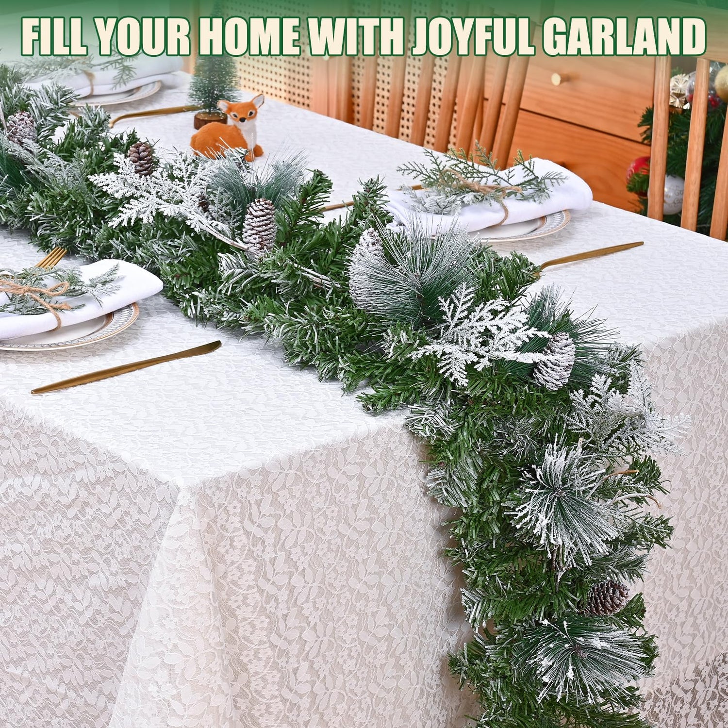 - Looks Like Fresh-Cut Pine: Crafted with premium PE material and fine attention to detail, our Flocked Christmas Garland replicates the subtle color variation and delicate needle structure of real Norfolk pine. The snow-frosted pine needles have that soft, natural texture, and the subtle green hue doesn't scream "plastic." It brings that cozy Christmas vibe without the mess of real pine needles.