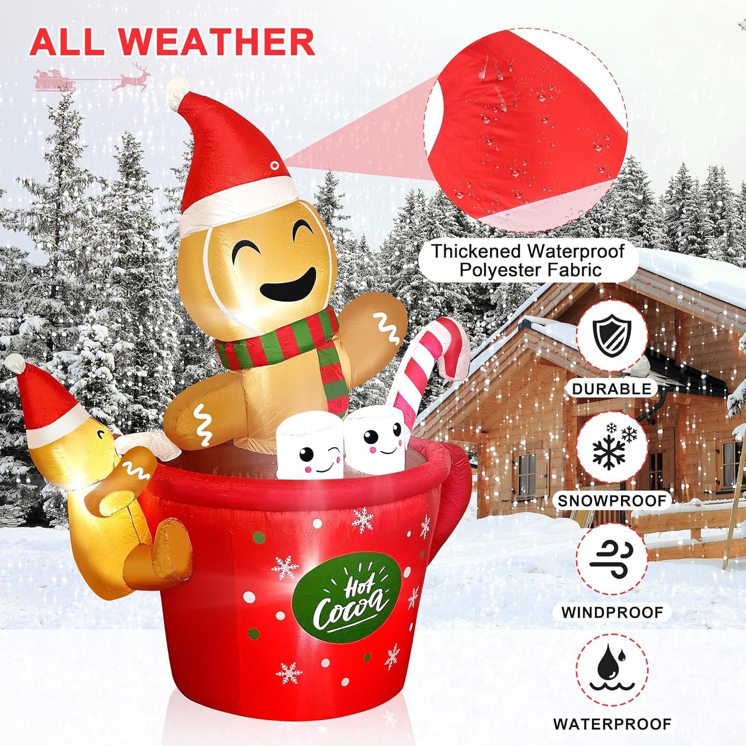 Details: 6 FT Christmas Inflatables Outdoor Decorations, Cute Gingerbread Man Christmas Inflatable, Inflatable Christmas Yard Decorations with Built-in LED Lights