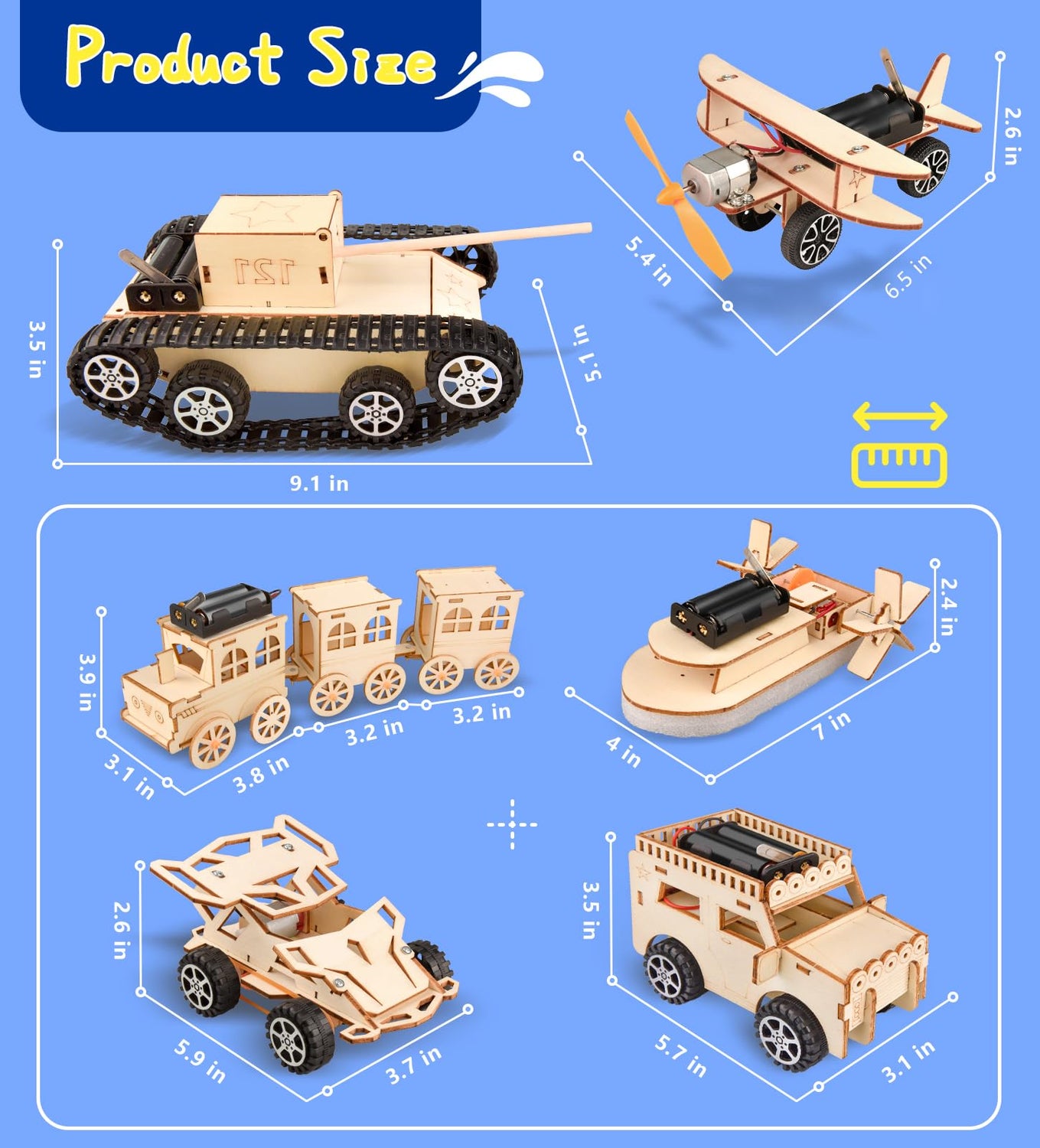 - 6-IN-1 STEM TOY KIT FOR KIDS AGES 8-12: This comprehensive STEM toy set includes 6 different models. Each model offers a unique hands-on experience that encourages kids to explore engineering and scientific principles. Requires AA batteries (not included).
