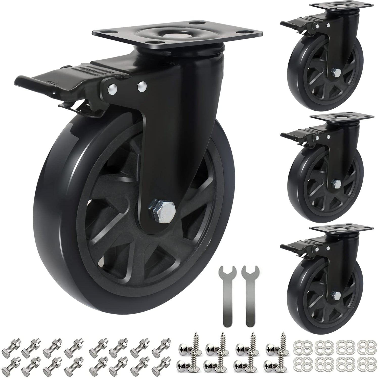 - ✔【Lockable Caster Wheels Heavy Duty】6 inch cart wheels equipped with double brake, holding the equipment firmly in place to reduce accidents. This combination wheel brake and swivel lock is essential for safety in some applications, such as on worktables, table saws, medical equipment, and used on uneven floors.