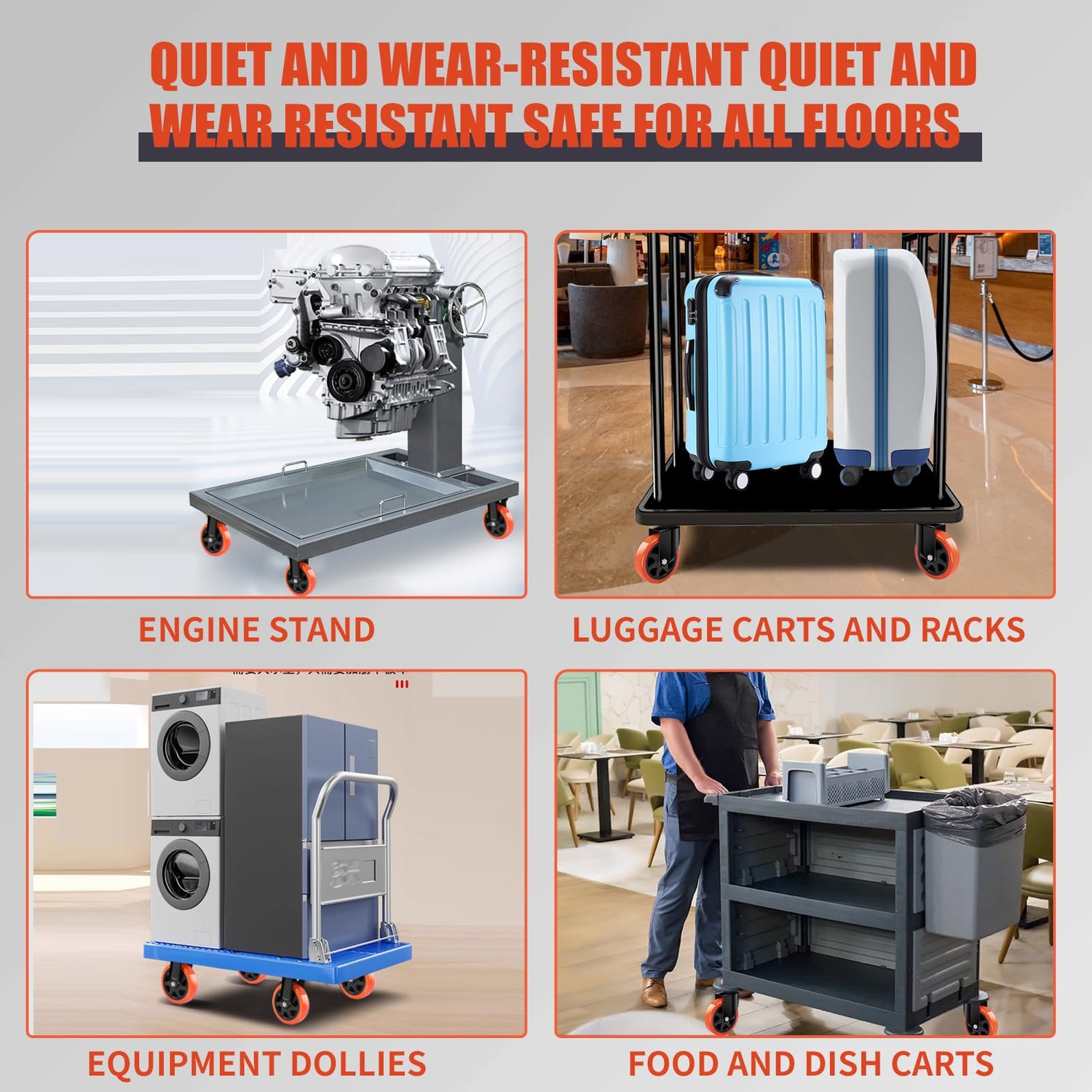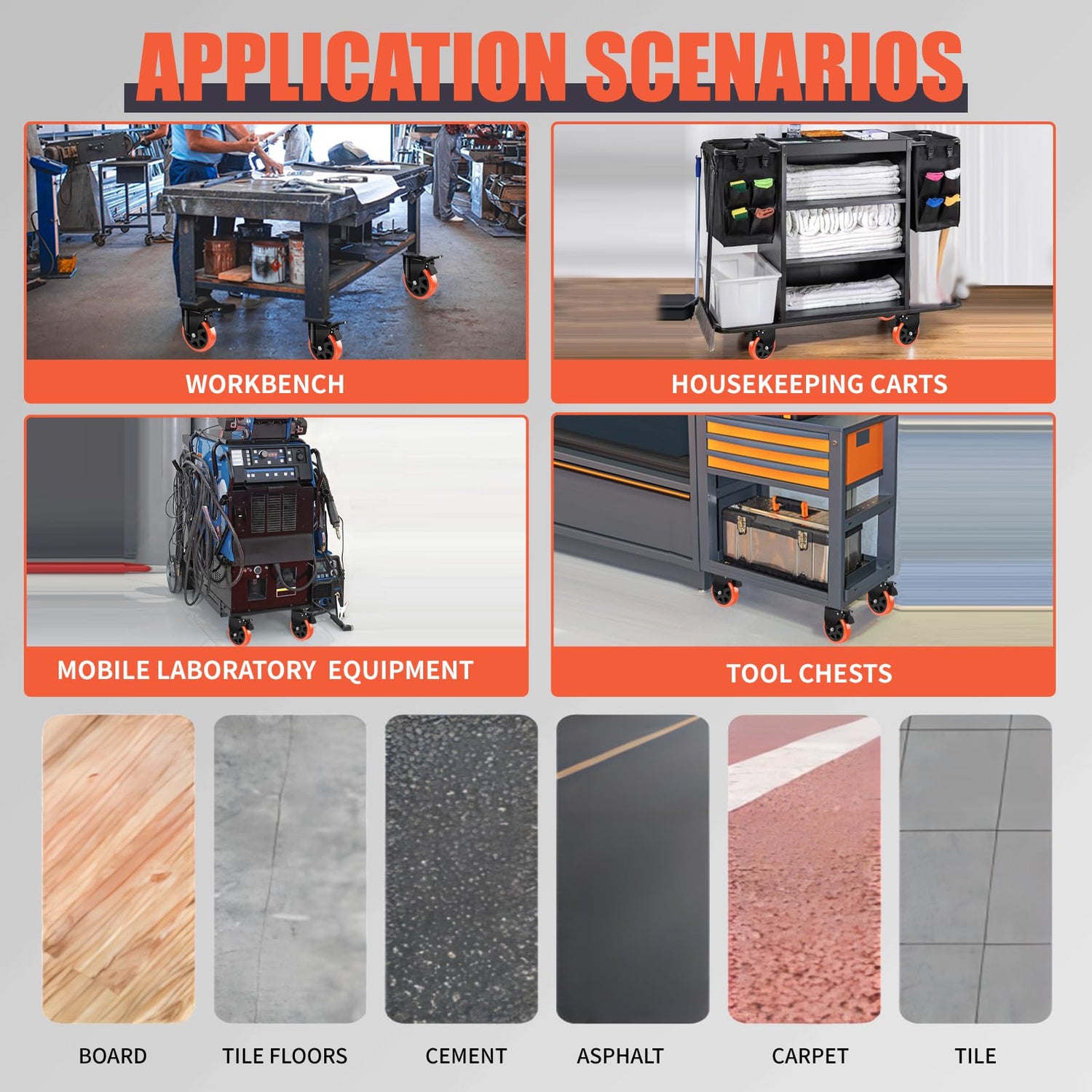 - WIDE RANGE: 6-inch industrial casters Suitable for industrial and residential environments, including carts, furniture, plant stands, bookshelves, toolboxes, cabinets, craftsman workbenchs, harbor freight, workbenches, shelves, etc., providing a full range of solutions for your various needs.