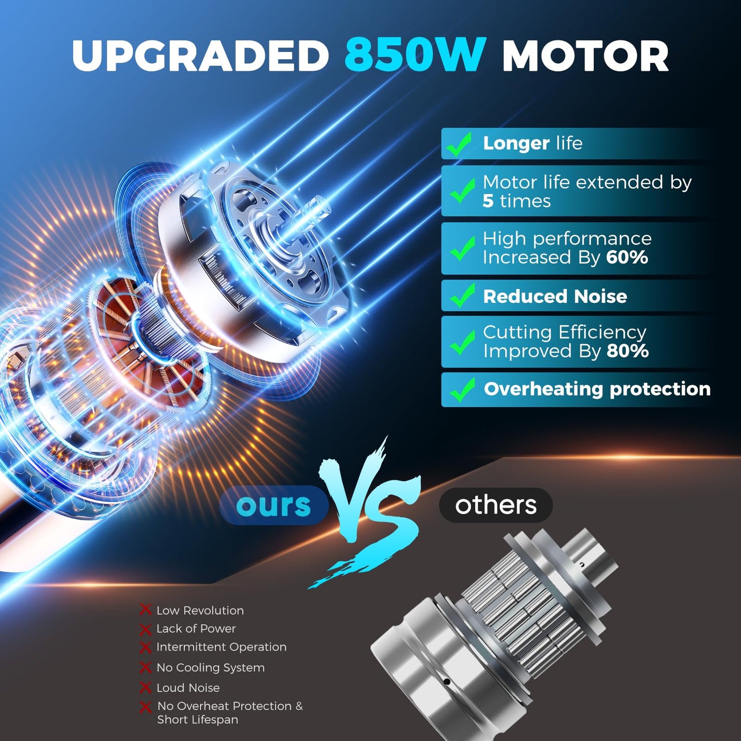 - Ultra-Powerful Pure Copper Motor: Our electric chainsaw, driven by a high-power pure copper motor, easily cuts through logs, bamboo, or branches. It delivers strong cutting force with stable, peak performance and a quick-start function. The overheating protection system ensures safety and extends the motor lifespan.