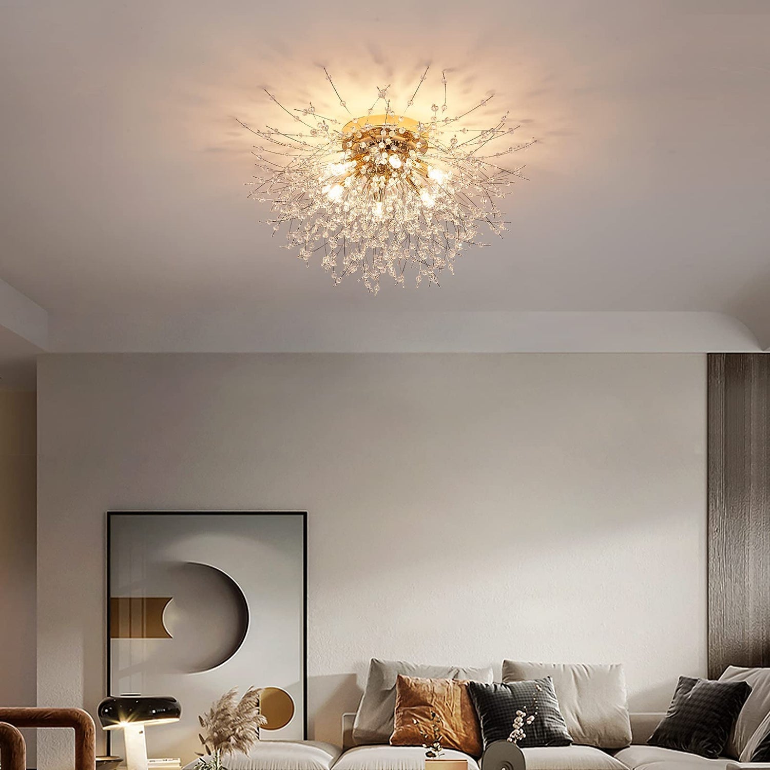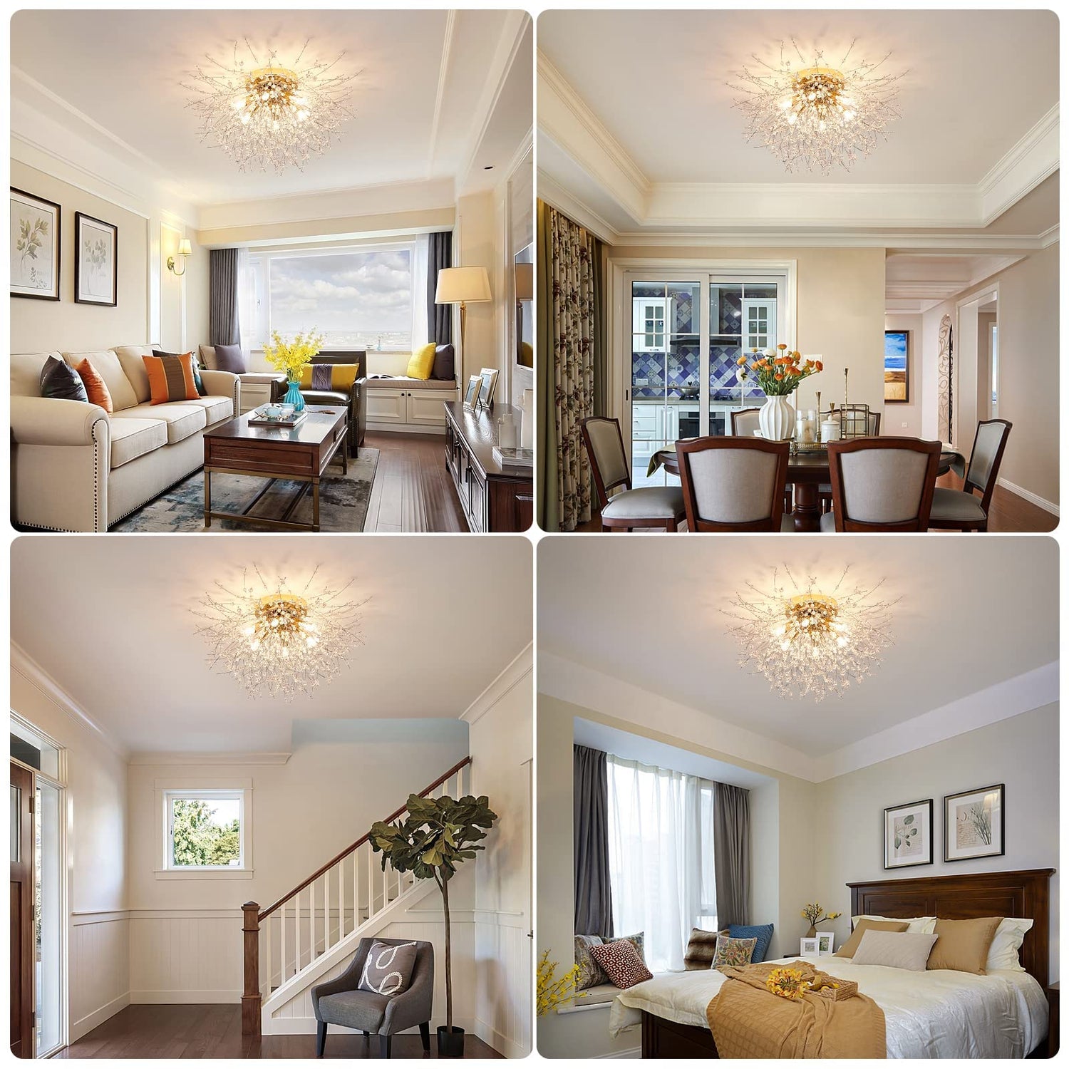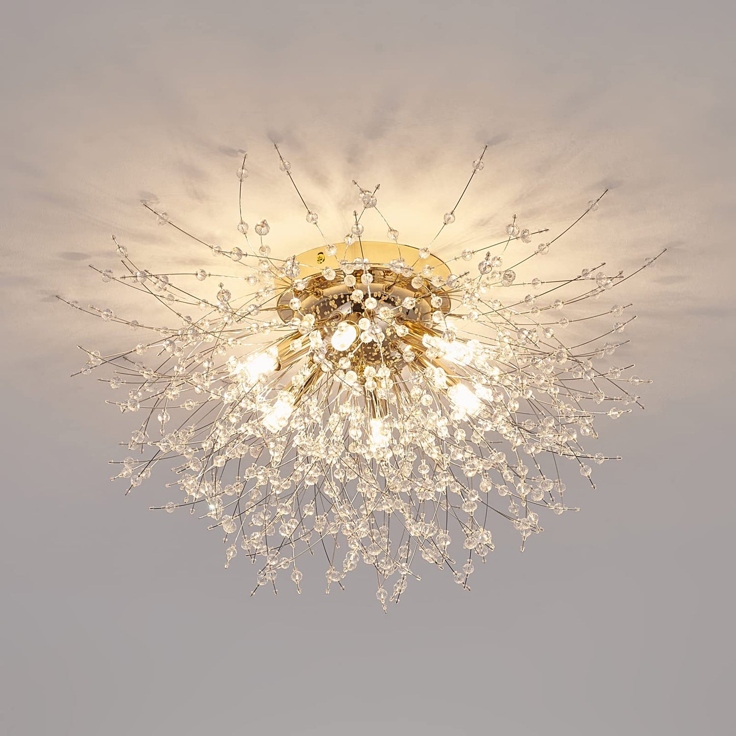 - 【Unique Design & Modern Style】: This flush mount ceiling light is designed with crystal firework shape, so elegant and gorgeous that adds a beautiful decor to your house. This ceiling lamp is a great choice for nearly any space such as hallway, entryway, living room, bedroom, basement, bathroom, kitchen, also perfect for commercial lighting in restaurants, cafes, shops, etc.