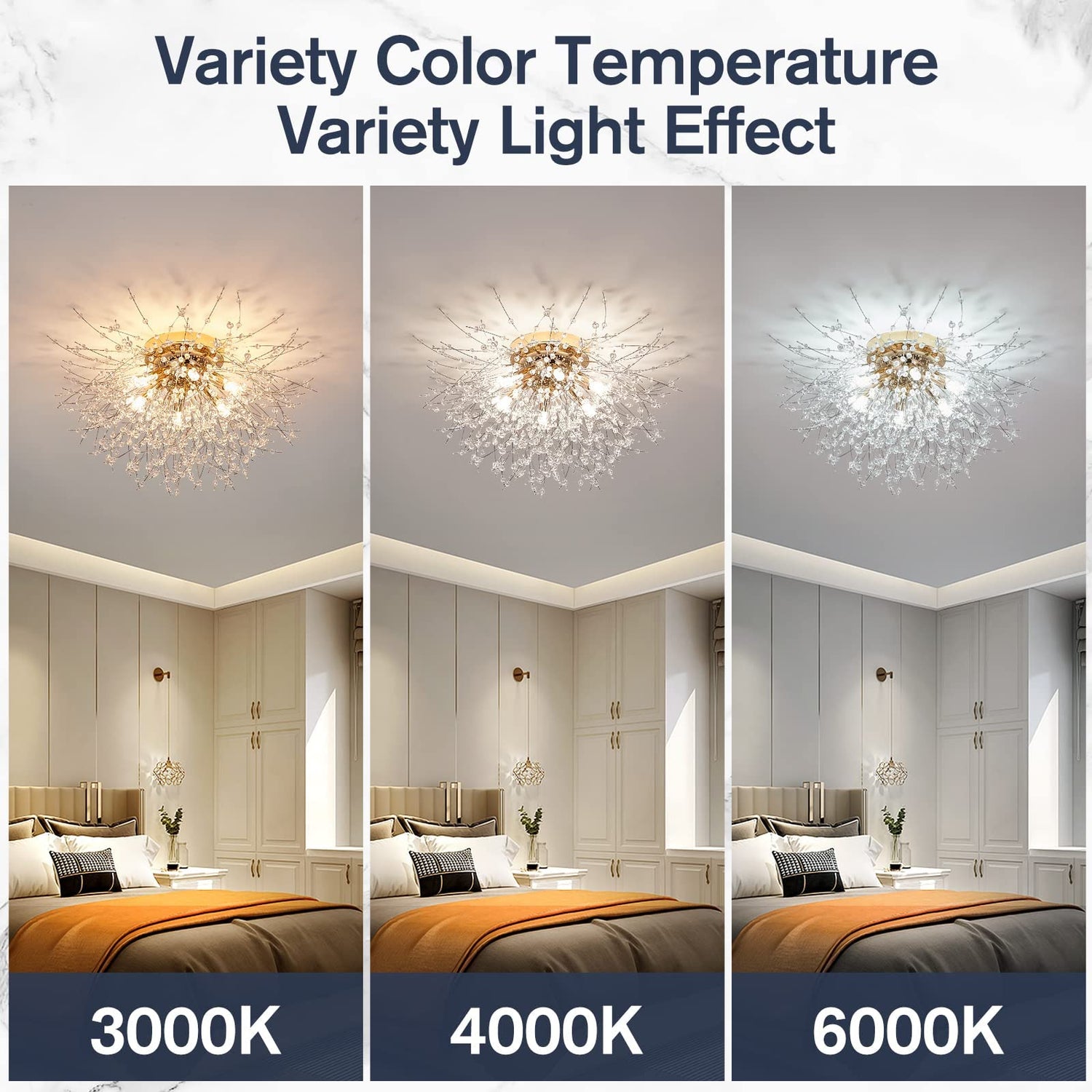 - 【Easy to Install】: This crystal ceiling light is extremely easy to assemble only by 3 steps described on the instruction. But please just keep in mind that cut all plastic rings fixing on crystal strings in the last step.