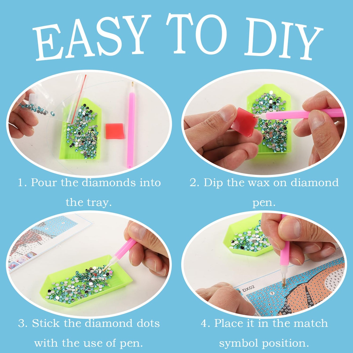✮4. Pull out diamonds that you need onto the diamond tray. Get matching diamond dots for kids ages 6-7-8-9-10-12 girls boys from diamond tray with the help of the pen.
