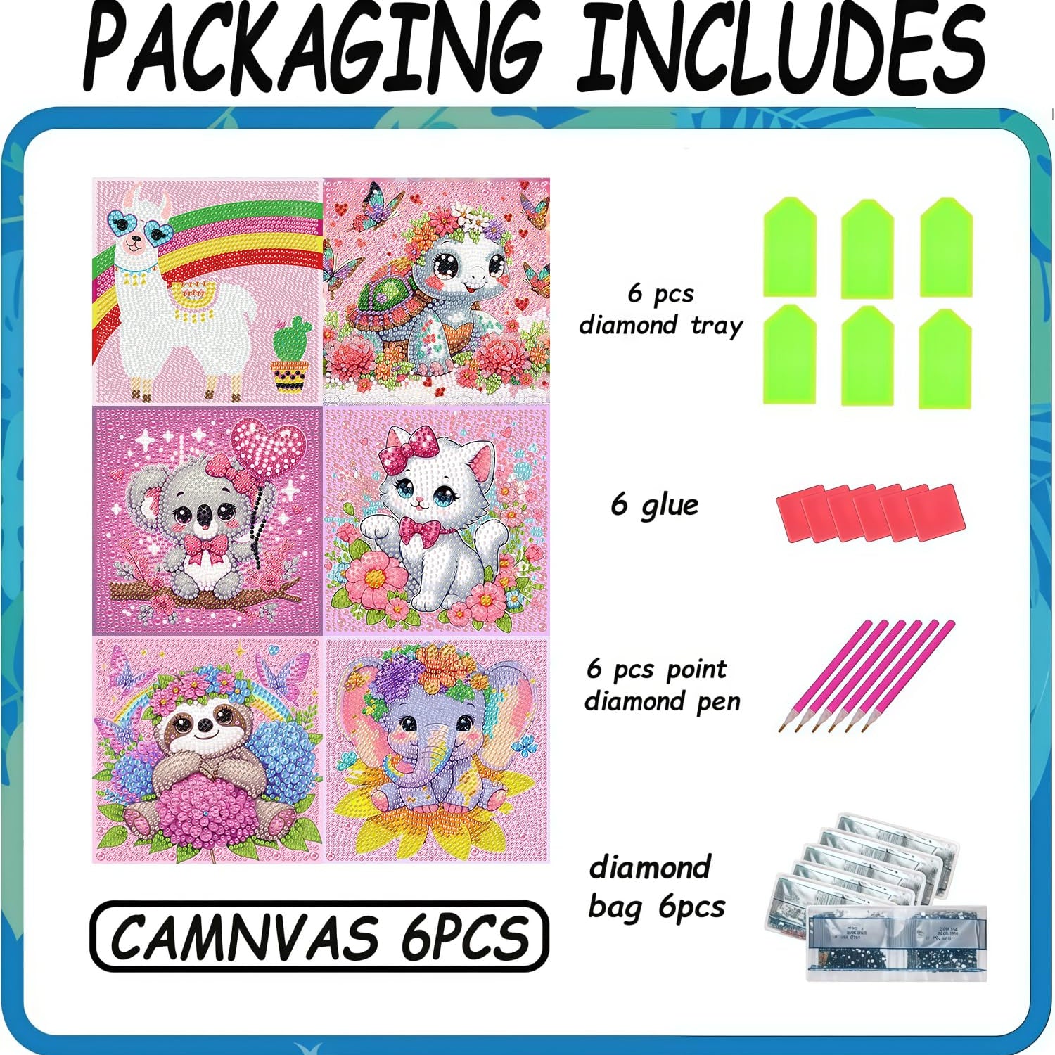 - 【Quality Material】Diamond art kits for kids all with high HD printed oil canvas, elephant sea turtle crystal diamond art for beginners has everything you need,6* HD printed canvas,6* diamond pen, 6* glue,6* tray, enough round diamonds so there is no need to purchase any other koala paint by diamonds rhinestones dots art kits,you can DIY your art & crafts by yourself, parents also can work with gem painting to finish the creation(frame not including), you will create 6 different pattern paintings.