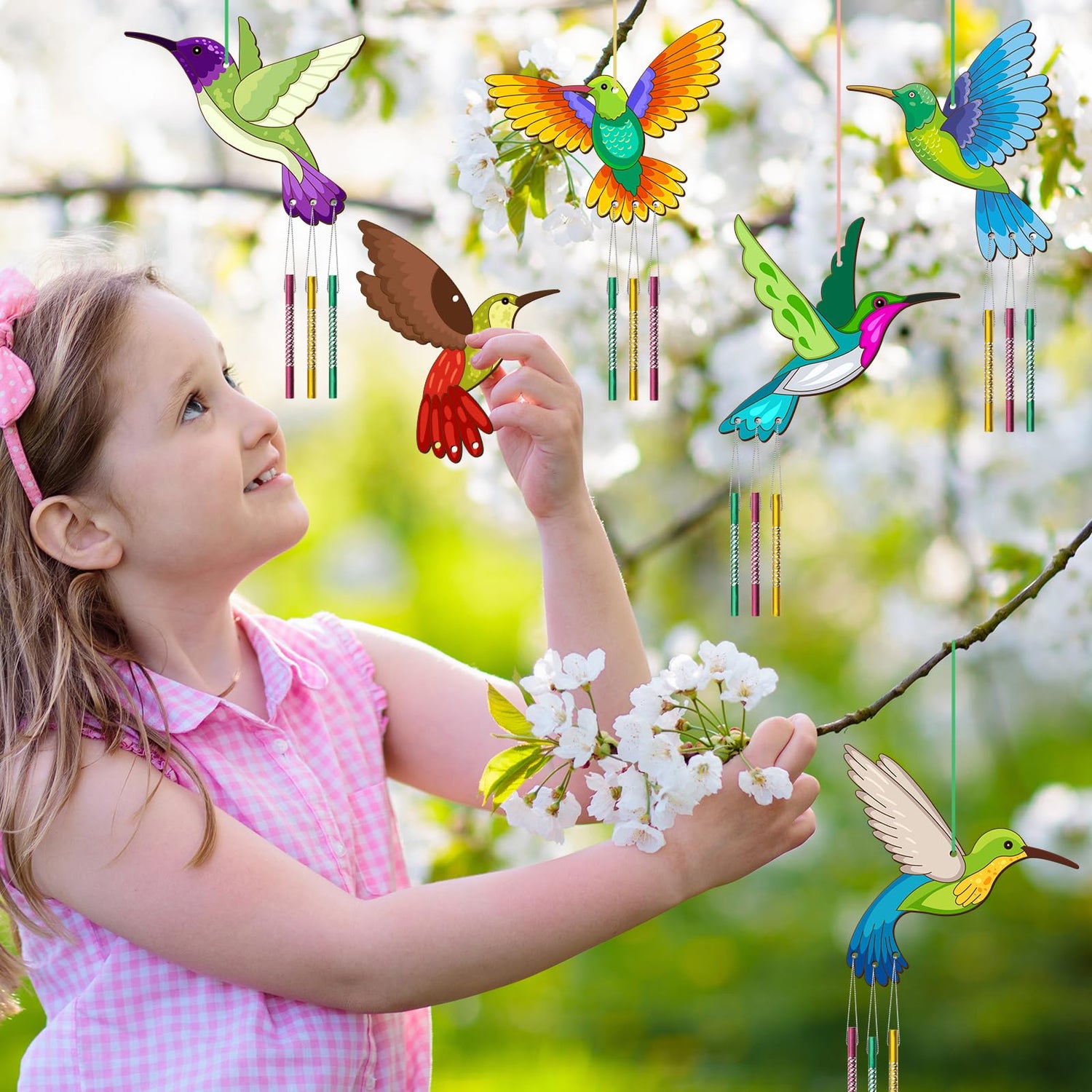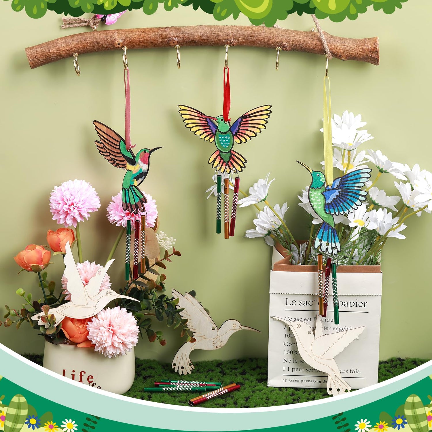 6 Pack Hummingbird Wind Chime Kit for Kids to Paint Make You Own Spring Wind Chimes Wooden Art Arts and Crafts Bird Ornaments Spring Smmer Party Decoration for Kids and Adults