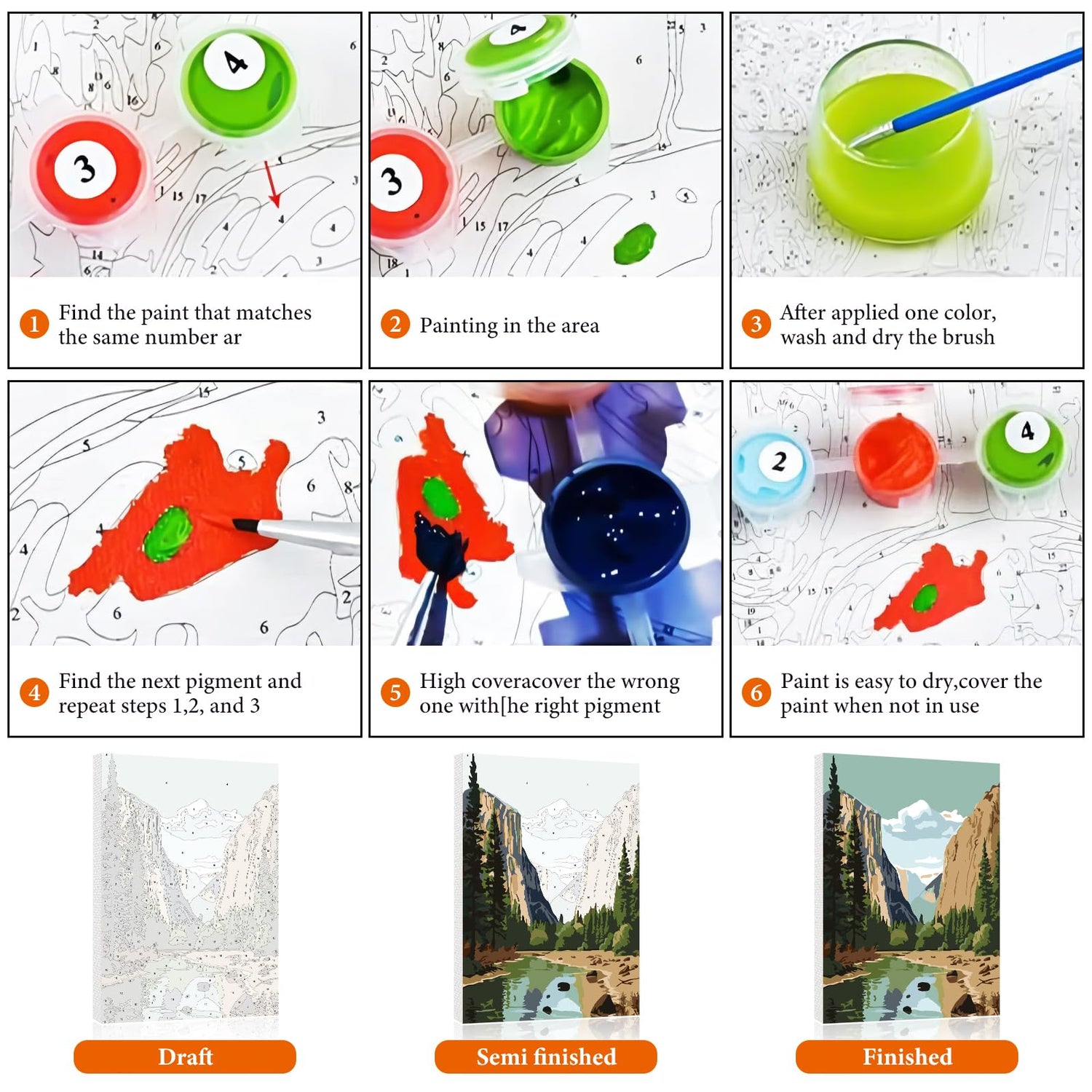 - Easy Oil Painting: Different from other paint kit, our national park paint by numbers kit for adults beginner uses HD color canvas. The number area is easier to distinguish, and paint is easier to adhere to it. Whether you are an experienced painter or inexperienced, you can create amazing artworks that will make you feel like an established painter by following the instructions. You need match the numbers of the paint and the figures on the canvas to fill in the paint