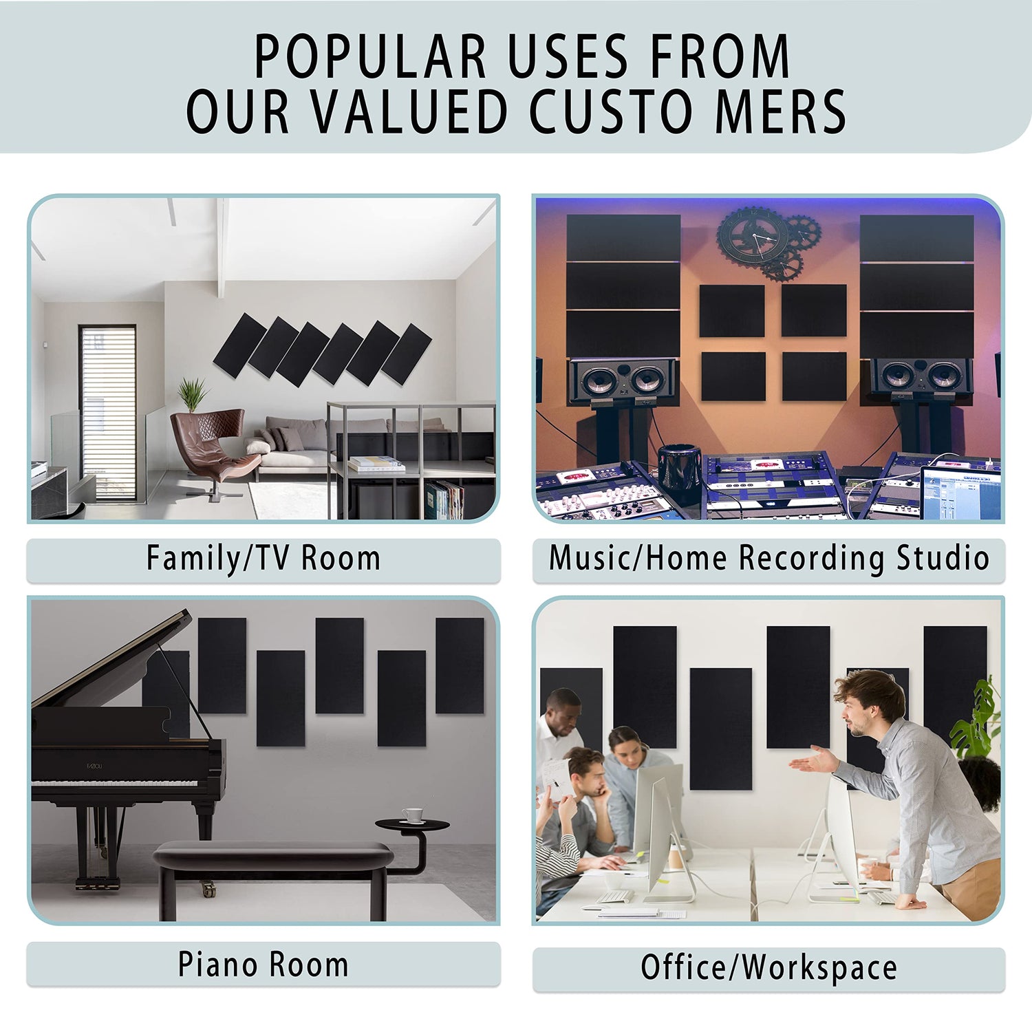 - 【WIDELY APPLIED】The professional sound dampening panels, you can make other sounds much clearer, it can be used for professional studios, rehearsal rooms, concert halls, podcasting, churches, home theaters, vocal booths, home studios, offices.