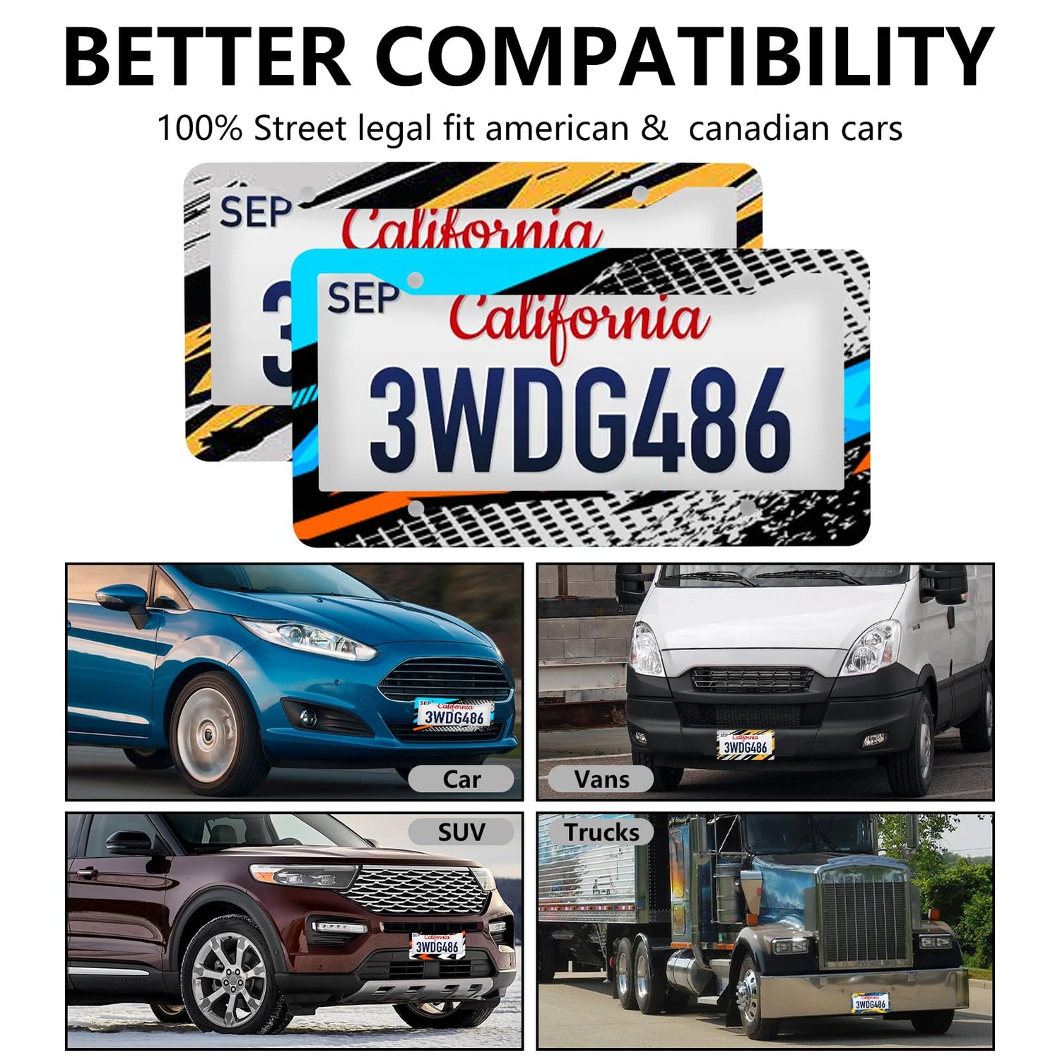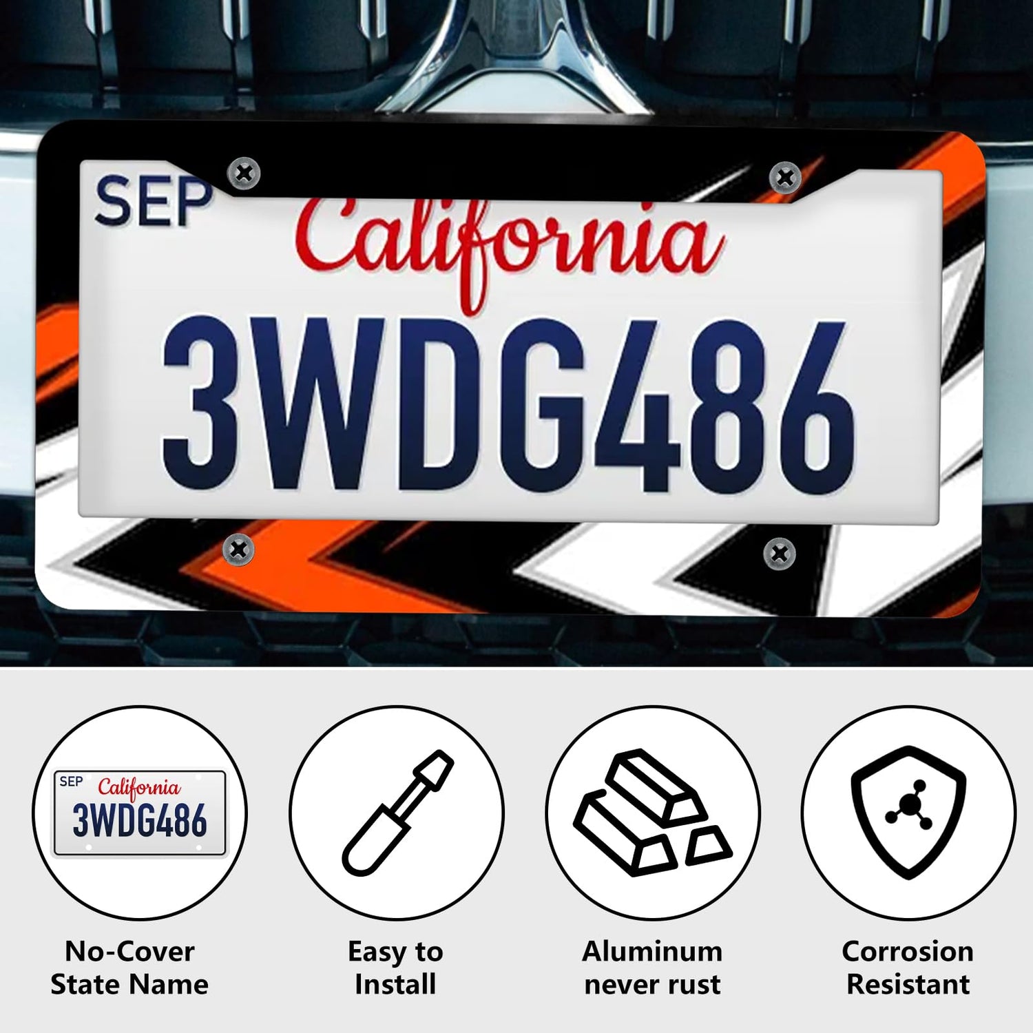 - 【U.S. standard license plate frame】 “12.2”*”6.3” inches license plate frame fit for all America and Canada license plate. The aluminum license plate can be a well protected. NOTE: the license plate frame is designed for most of situations, According to the laws in your state, please make sure our license plate frame will not block out any information of the license plate.
