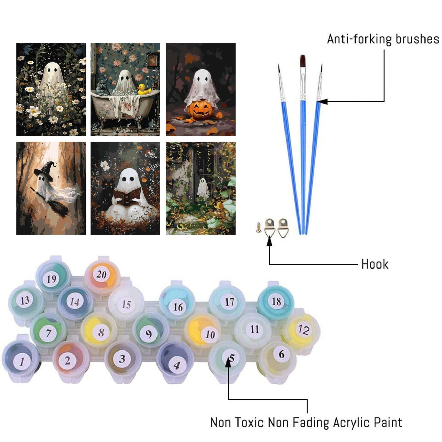 - 【Adults' Paint-by-Number Kits-Halloween Ghosts】Painting by numbers kits include paint by number canvas, size 11.8x15.8 inches (no border),6 set acrylic paints,6 set paint by numbers brushes.and number painting for adults accessories,hook and number drawing paper guide. 🎈Attention🎈 If there are any unclear numbers, please feel free to ask us for an electronic base map.