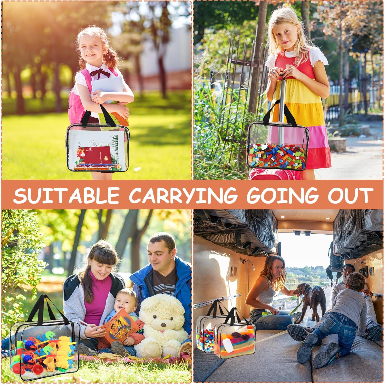 - 【Heart-Warming Design】: The toddler zipper storage bags for kids have an overall transparent design, so children can easily see and find the toys inside they want. Storage bags for toys have two handles, which have a stronger load-bearing capacity and are more sturdy for carrying toys, books, etc. when going out. Included name labels help you write names or store them in categories