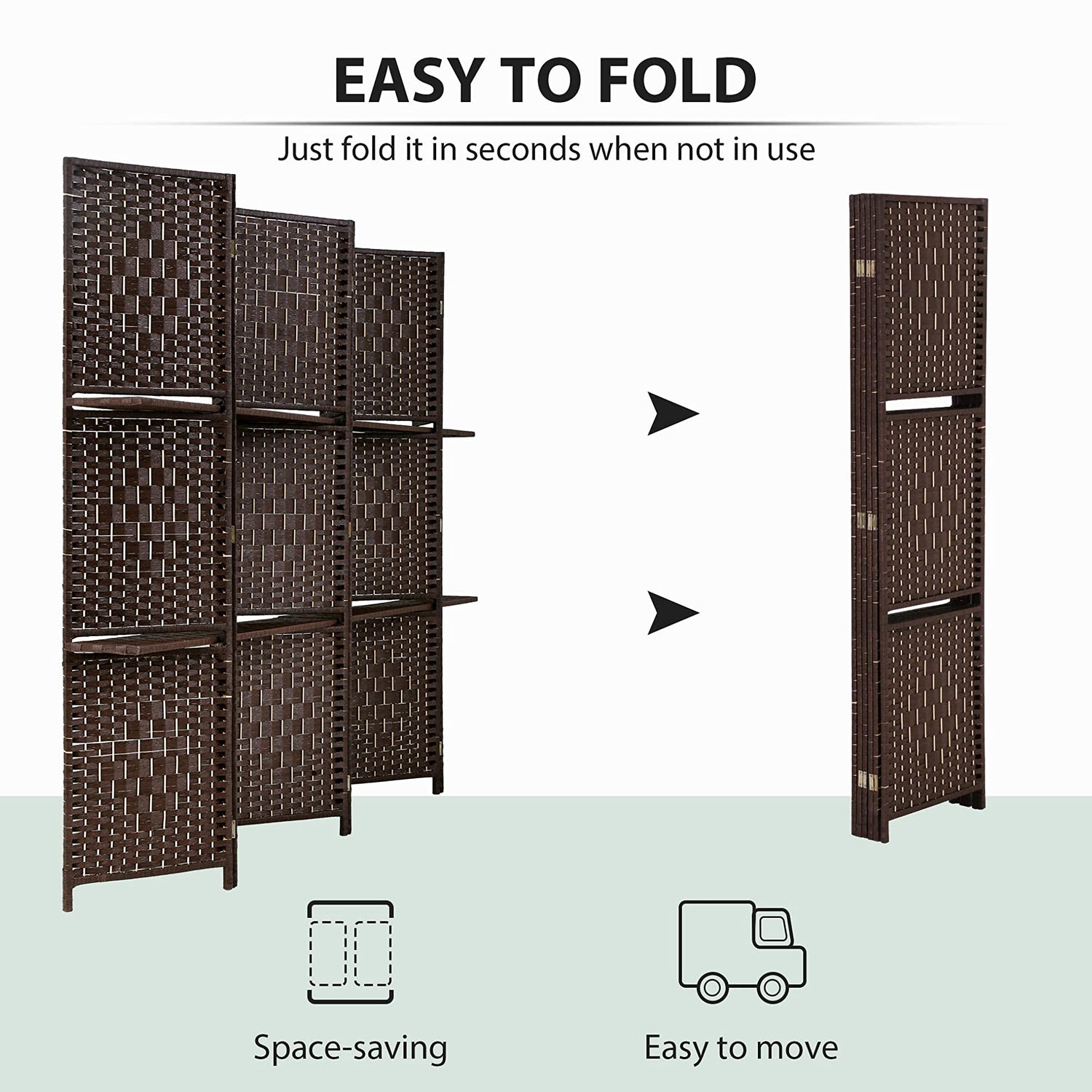 6 Panel Wood Room Dividers with Shelves Folding Privacy Screens Portable Partition Screen, 6 Ft Tall 5.7 Ft Wide Room Partitions and Dividers, Folding Privacy Wooden Screen with 2 Shelf