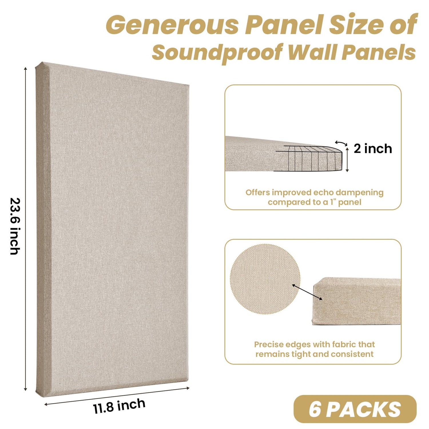 6 PCS Acoustic Panels, Large Soundproof Wall Panels, Professional Fiberglass Sound Absorbing Panels, 23.6x11.8 Inches Sound Proof Foam Panels for Walls, Studio Home Offices