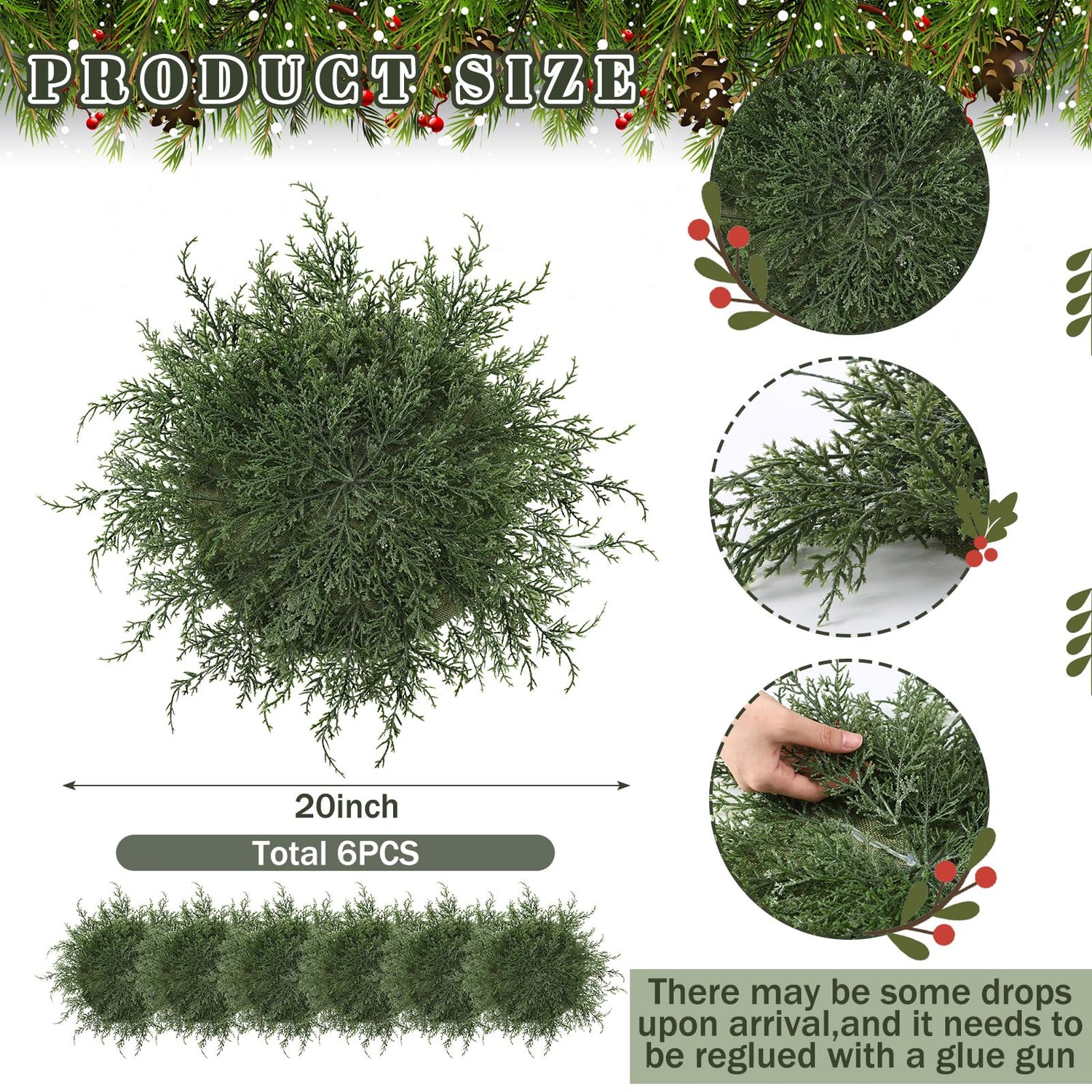 6 Pcs Christmas Pine Placemats 20 Inch Artificial Greenery Placemats Round Cedar Branch Place Mat Dining Table Mats for Xmas Party Decorations Holiday