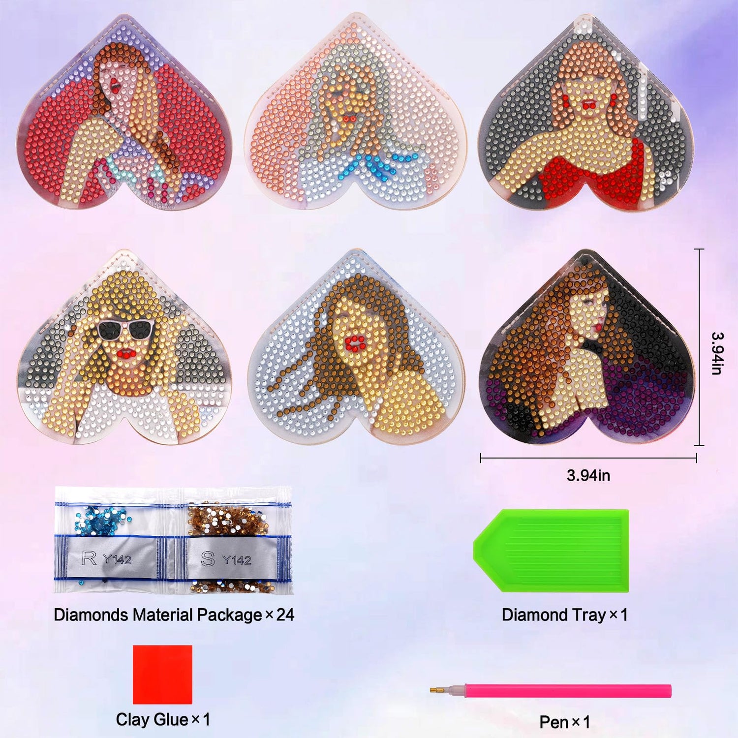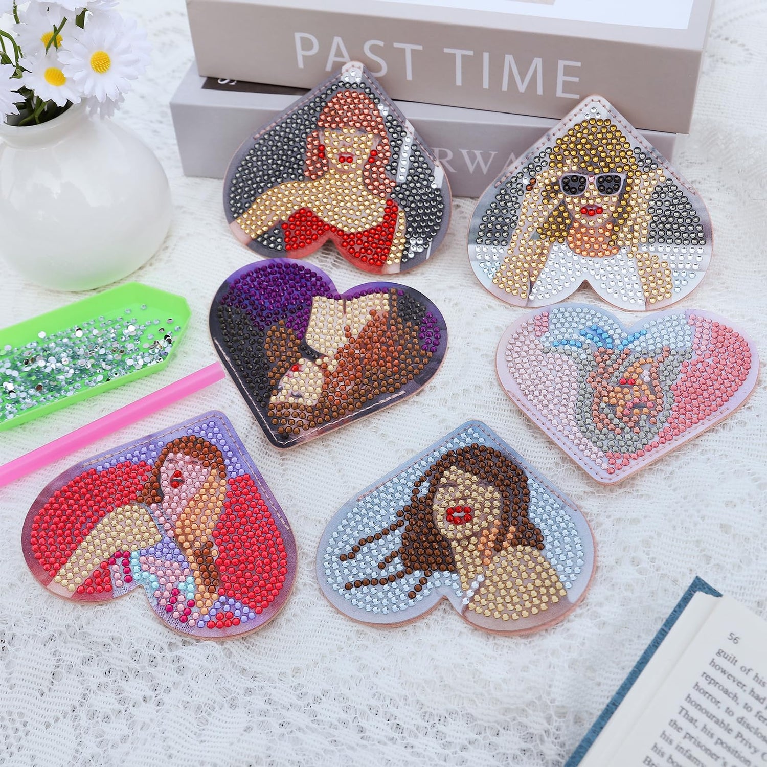 6 Pcs Diamond Art Bookmarks, Leather Heart Cute Bookmark,DIY Diamond Painting Bookmarks Gifts for Women and Girls, Diamond Art Kits for Adults Crafts(Singers)