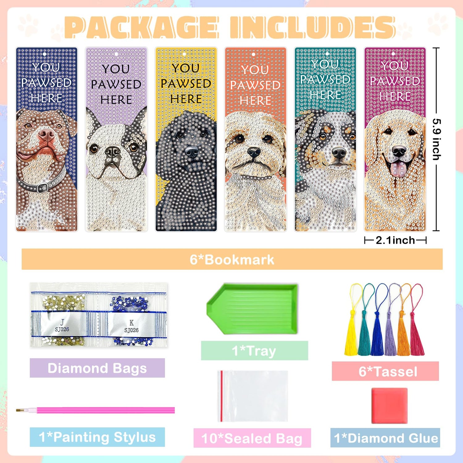 - 【Cute Dog Design】The diamond art bookmark features adorable dogs in a warm and friendly design, with each dog displaying a different demeanor. As you complete each diamond art bookmark, the dog image will come to life, with the sparkling diamond accents adding a special glow. Make your reading time more fulfilling and enjoyable!
