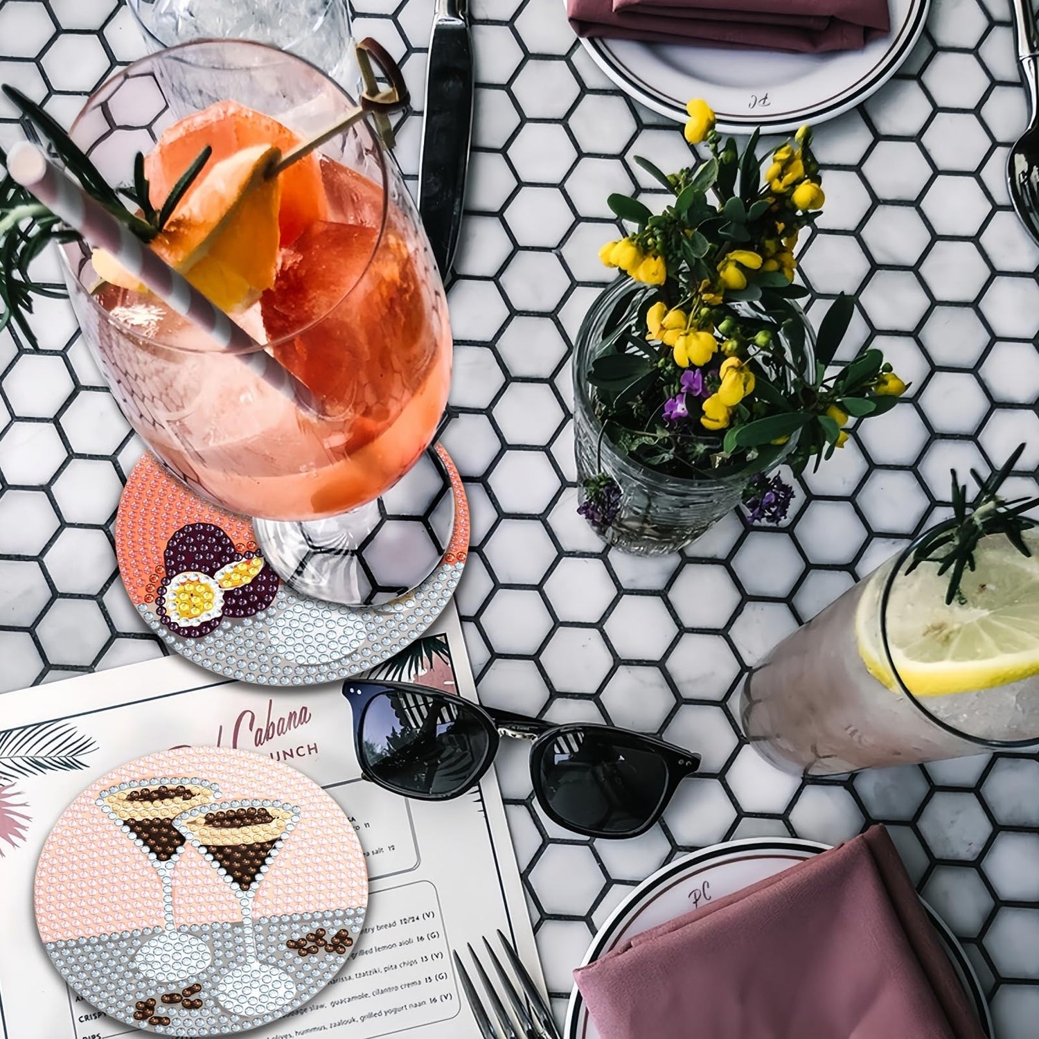 6 Pcs Diamond Painting Coasters Kits with Holder,Cocktail Diamond Art Coasters Set for Drinks Coffee Table, Gem Painting kit for Beginners Adults DIY Art Craft Gifts Home Decors (Cocktail)