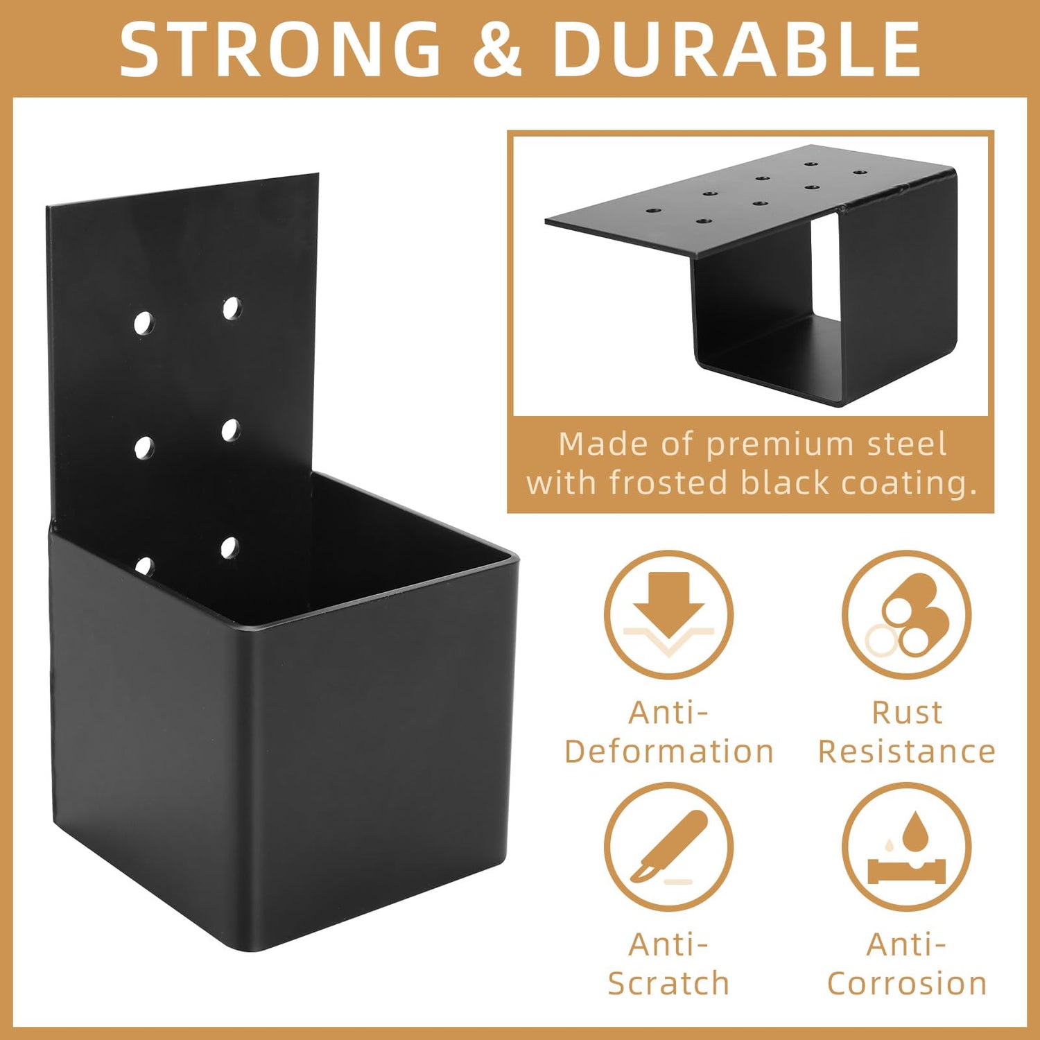 - HEAVY DUTY MATERIAL: Our pergola brackets are made of strong-hardness steel with a black powder-coated finish, which is not easy to rust or corrode. They offer better load-bearing than other types of metal, providing strong and stable support for wood posts.