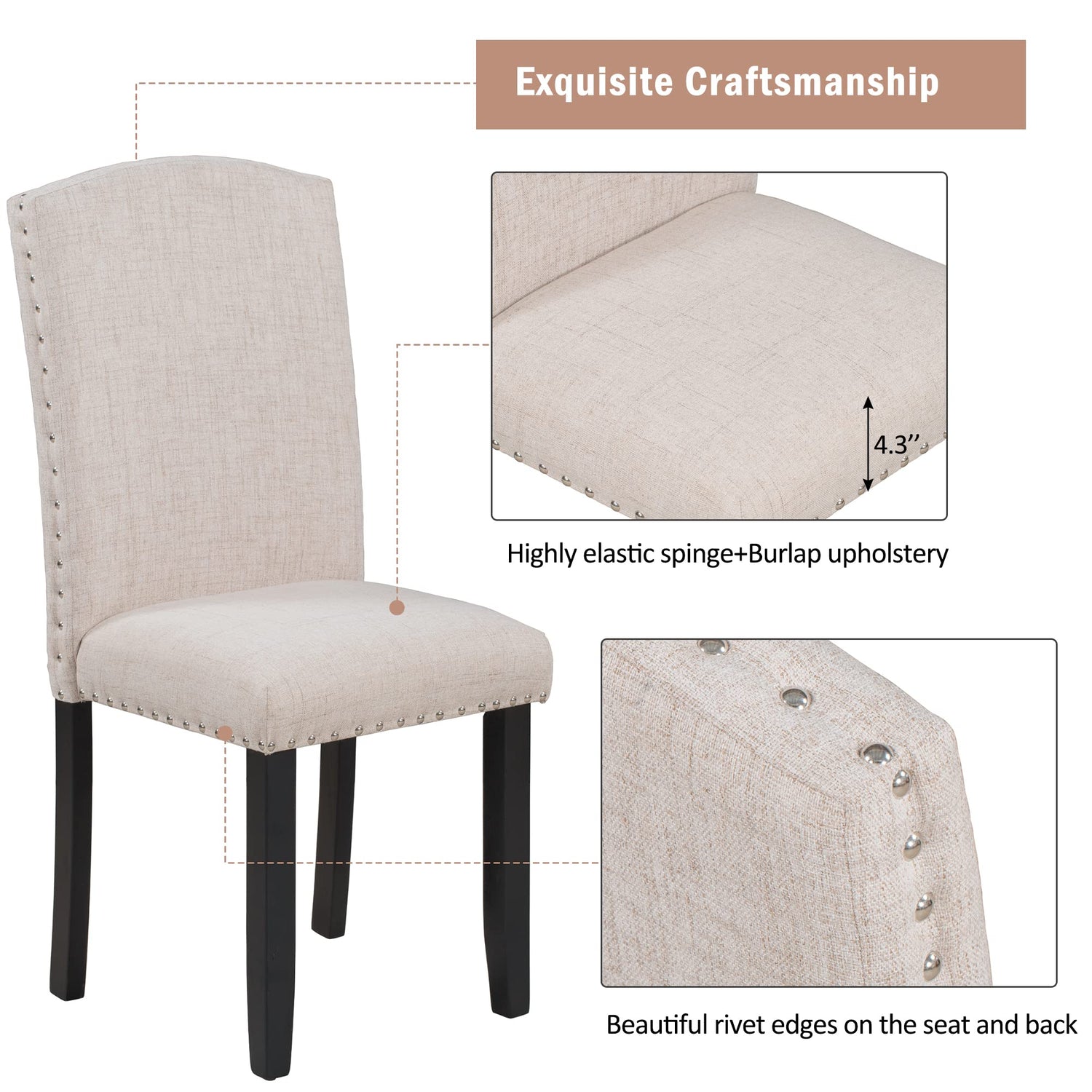 - 【Exquisite & Comfortable Dining Chairs Set】 Many of the details show the craftsmanship. The four upholstered chairs and a soft covered bench are soft and comfortable, with beautiful rivet edges on the seat and back. The thickness of cushion of chairs and bench is 2.4 inches to guarantee wonderful using experiences. Four high back upholstered chairs have curved chair back top styling to provide better back support.