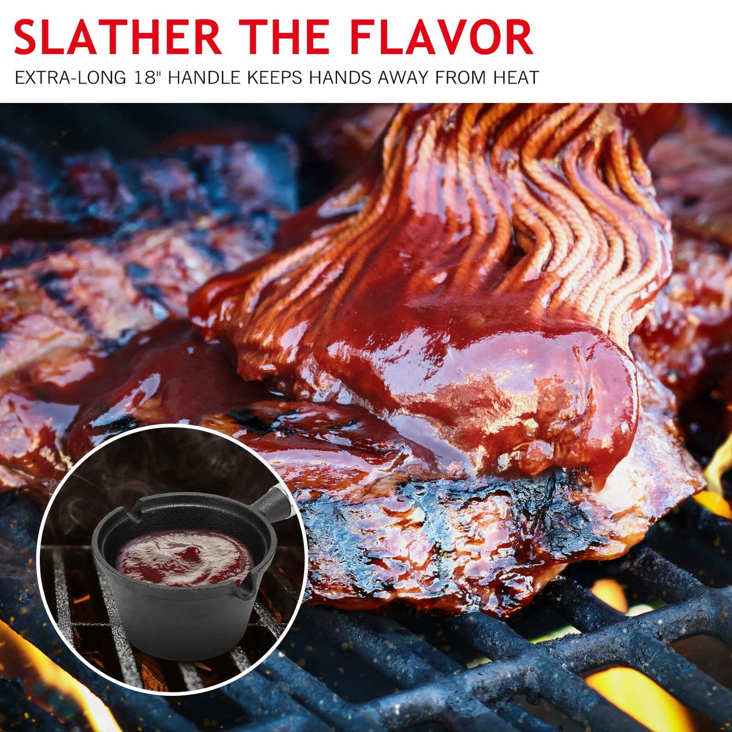 - Useful Iron Basting Pot: the basting pan is designed with a long wooden handle to avoid you from burning your hands while grilling; And it also has 2 no spill pouring spouts, suitable for heating sauce