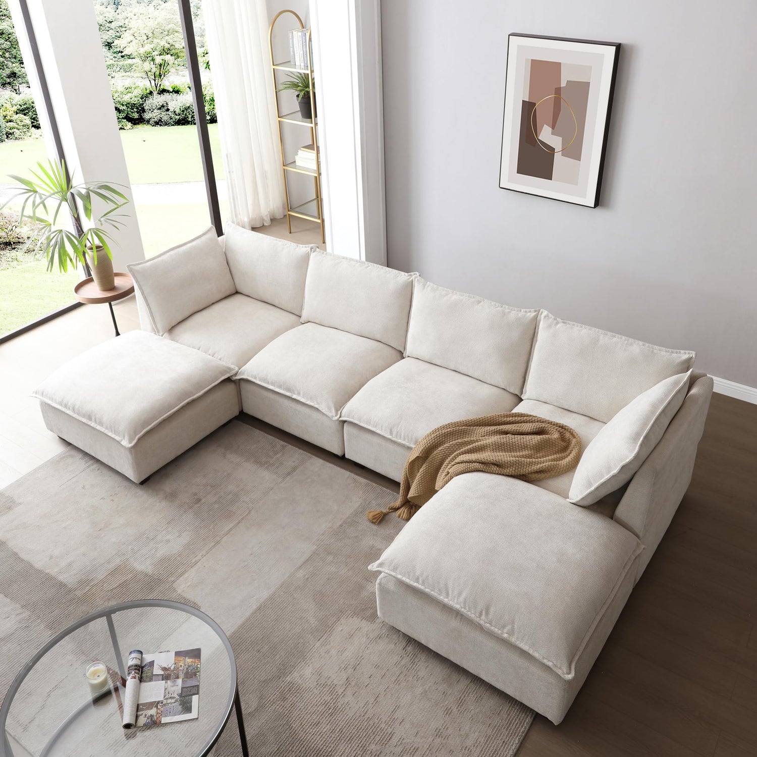 6 Seater Oversized Modular Sectional Sofa Couch, Down Filled U / L Shaped Free Combination Convertible Sofa&Couch with Movable Ottomans and Thicked Cushions for Living Room Apartment ,Linen Fabric