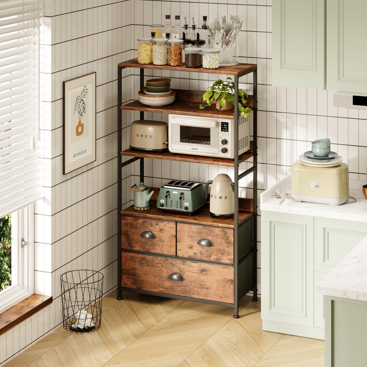 6 Tier Bookshelf, 47-Inch Small Bookcase with 3 Fabric Storage Drawers, Wood and Metal Book Shelf Storage Organizer, Industrial Display Standing Shelf Unit for Bedroom, Living Room, Rustic Brown