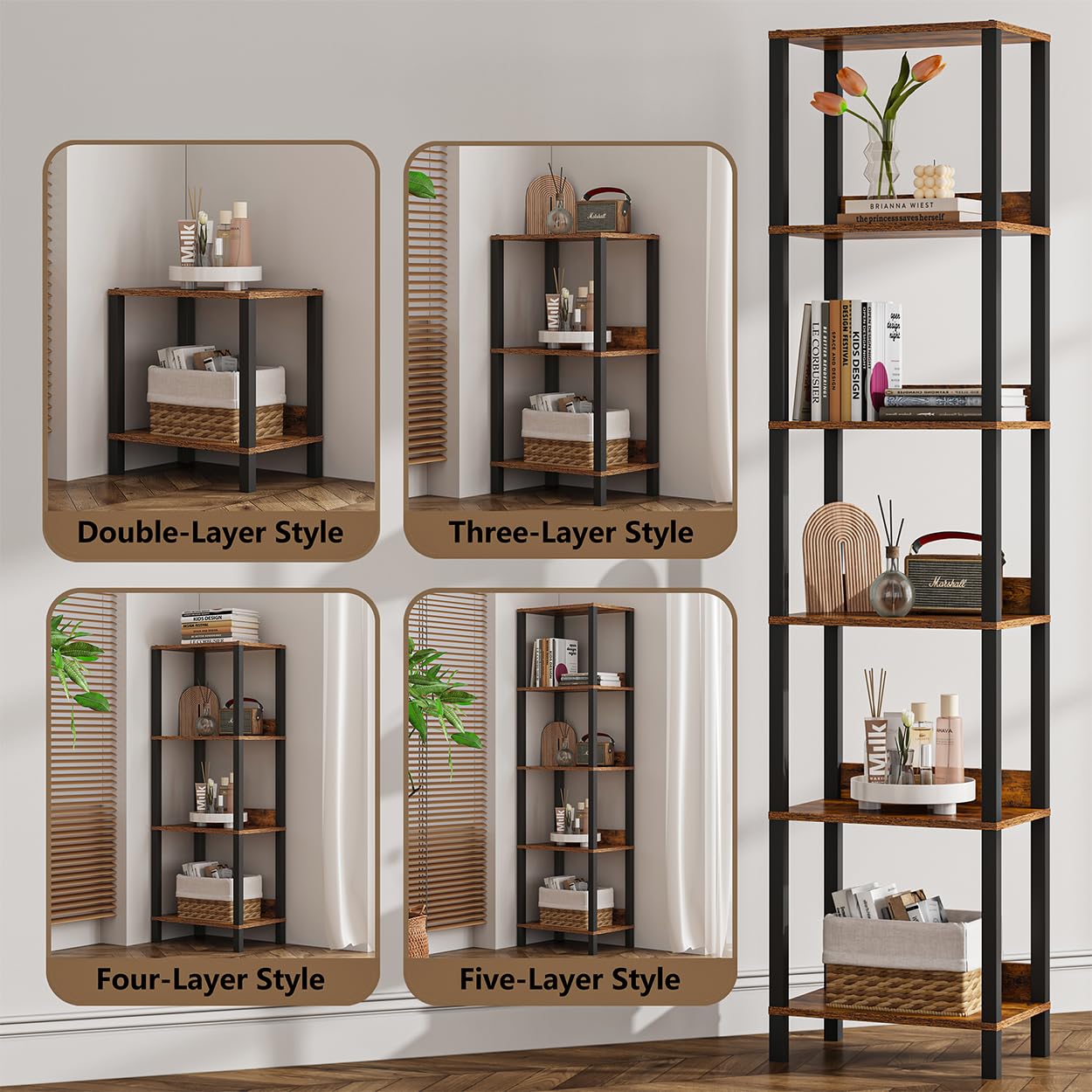 - [6-Tier DIY Bookshelf] The bookcase with the ability to adjust the number of shelves and their height, you can tailor the bookshelf to fit your space and storage requirements perfectly. Whether you need more room for books, decorative items, or even plants, this bookshelf adapts to your needs.