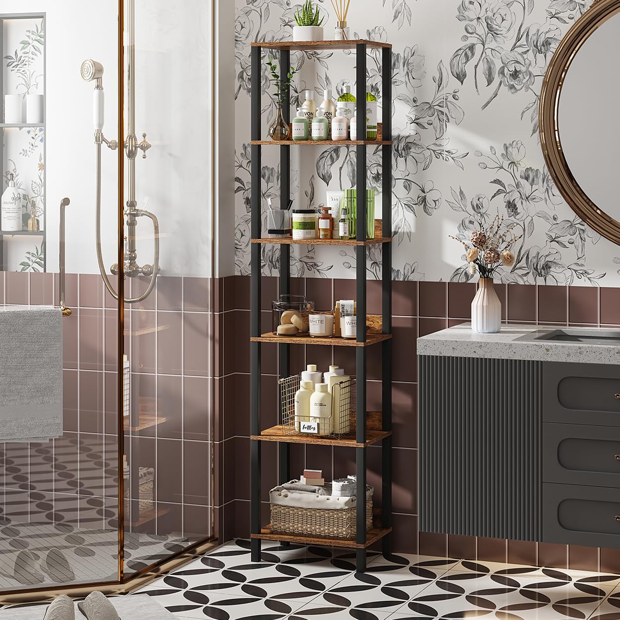 6 Tier Bookshelf with Anti-Fall Baffle, Tall 64.79" Bookcase with DIY Shelves, Industrial Book Shelf Storage Organizer, Display Free Standing Shelf Unit for Bedroom, Living Room, Office, Rustic Brown