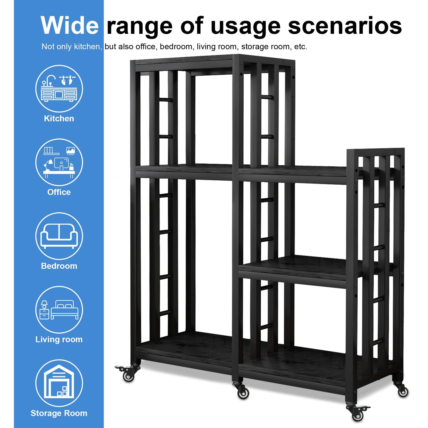 Multi-Purpose Storage: The multi-tier design provides ample storage space for a variety of items. It is suitable for storing not only kitchen essentials and ingredients but also living room decorations, storage boxes, files, and more. Keep your home organized and clutter-free.