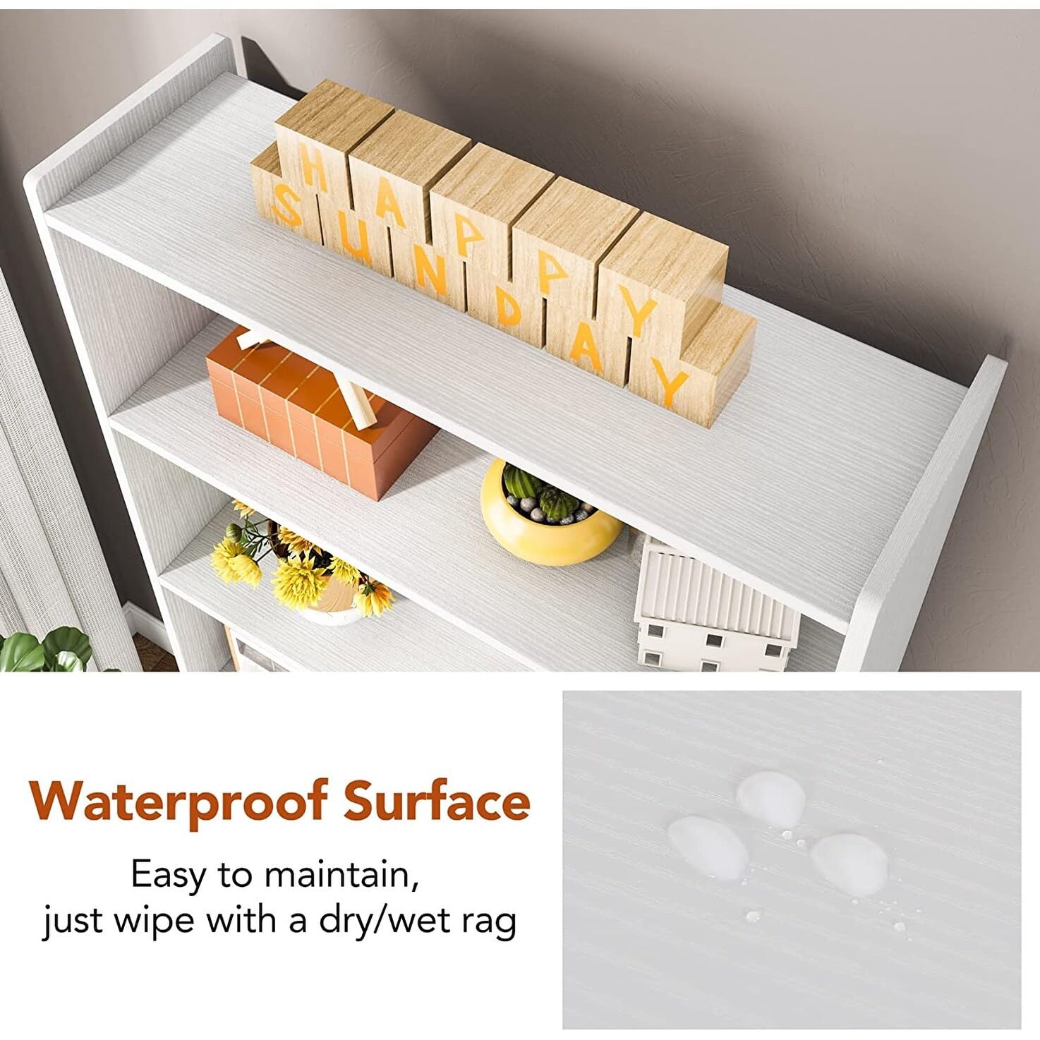 Crafted from thick particleboard and finished with a waterproof melamine coating, this tall bookshelf is built to withstand the test of time. It is both scratch-resistant and easy to clean, ensuring it remains a stunning focal point in your space. The free-standing vertical design offers excellent load capacity, allowing each shelf to hold up to 22 pounds, with a total capacity of 132 pounds.