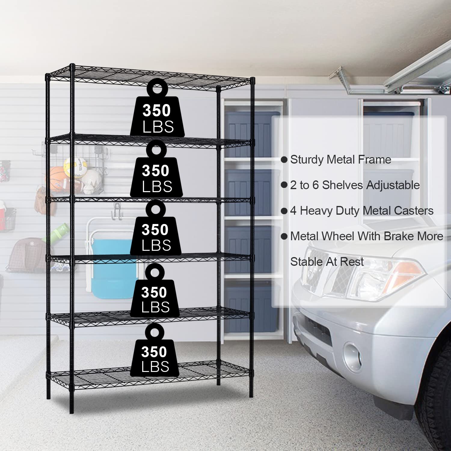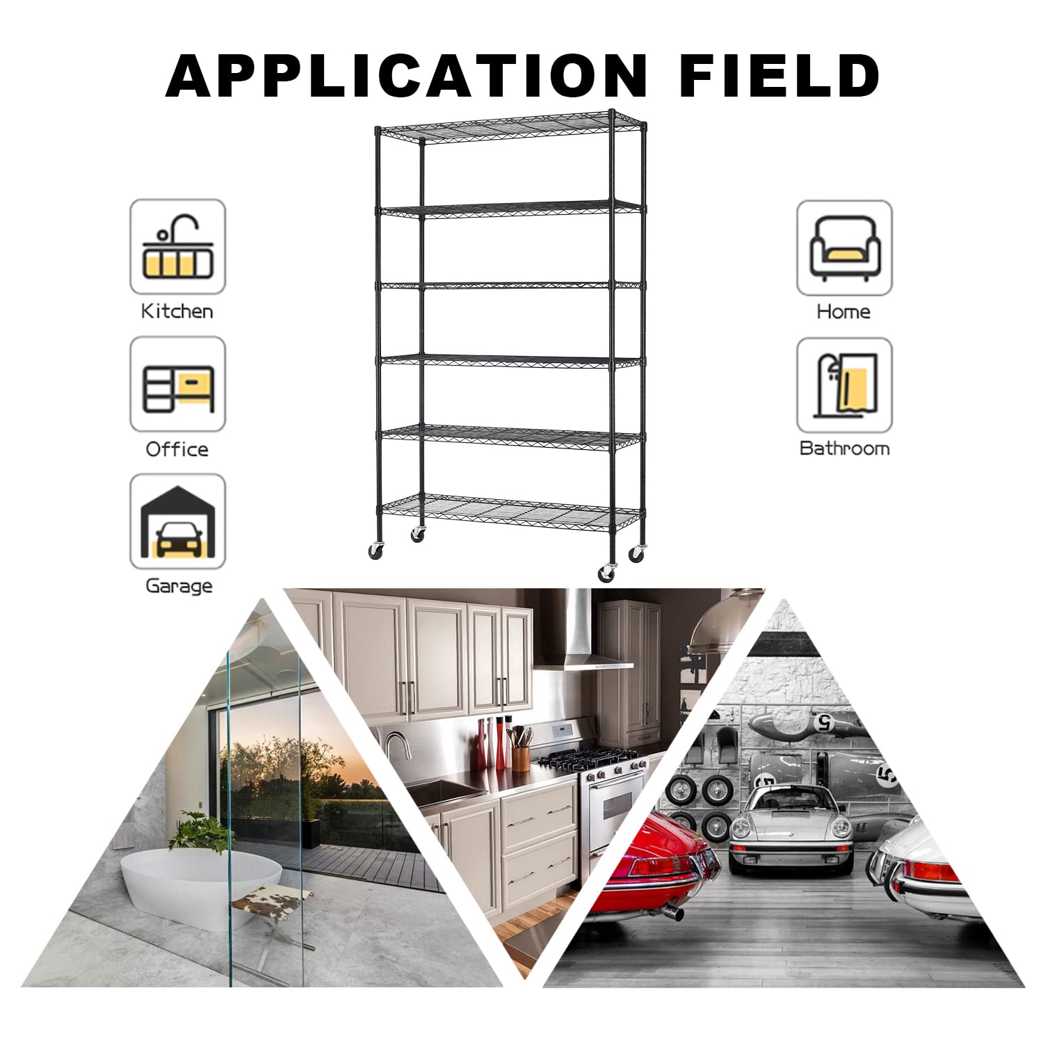 6-Tier Steel Wire Shelving Unit, 48x18x82in, 2100lb Capacity, Adjustable NSF Certified Storage Rack with Casters - For Garage, Kitchen, Pantry