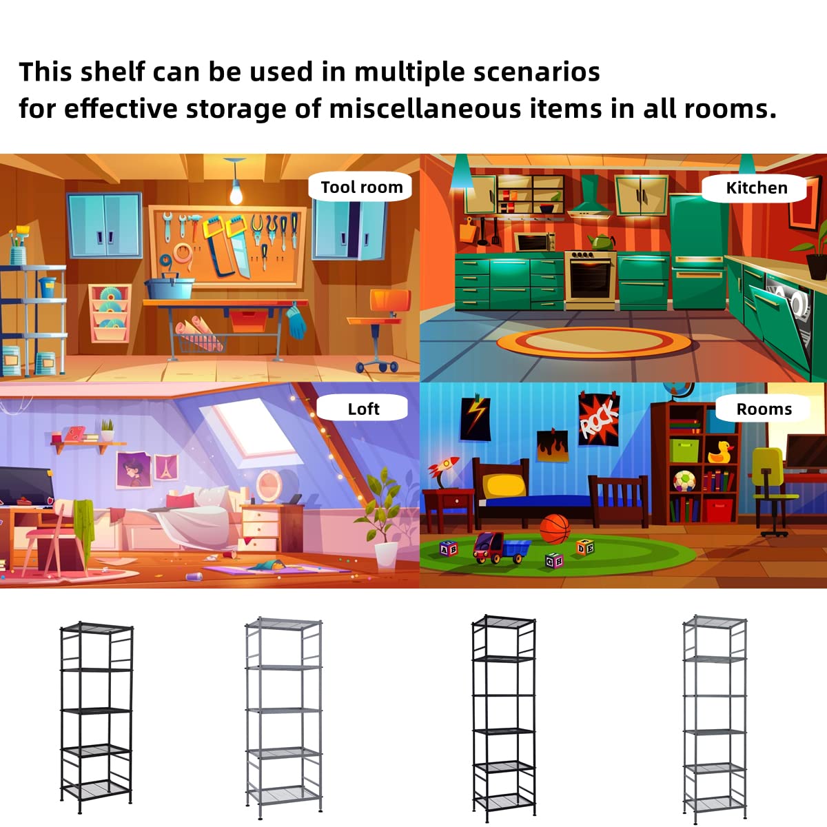 - The shelf is specially frosted paint surface for protecting it from any water, rust or corrosion. Not worry to place the shelving unit in your kitchen or bathroom, easy to wipe down clean