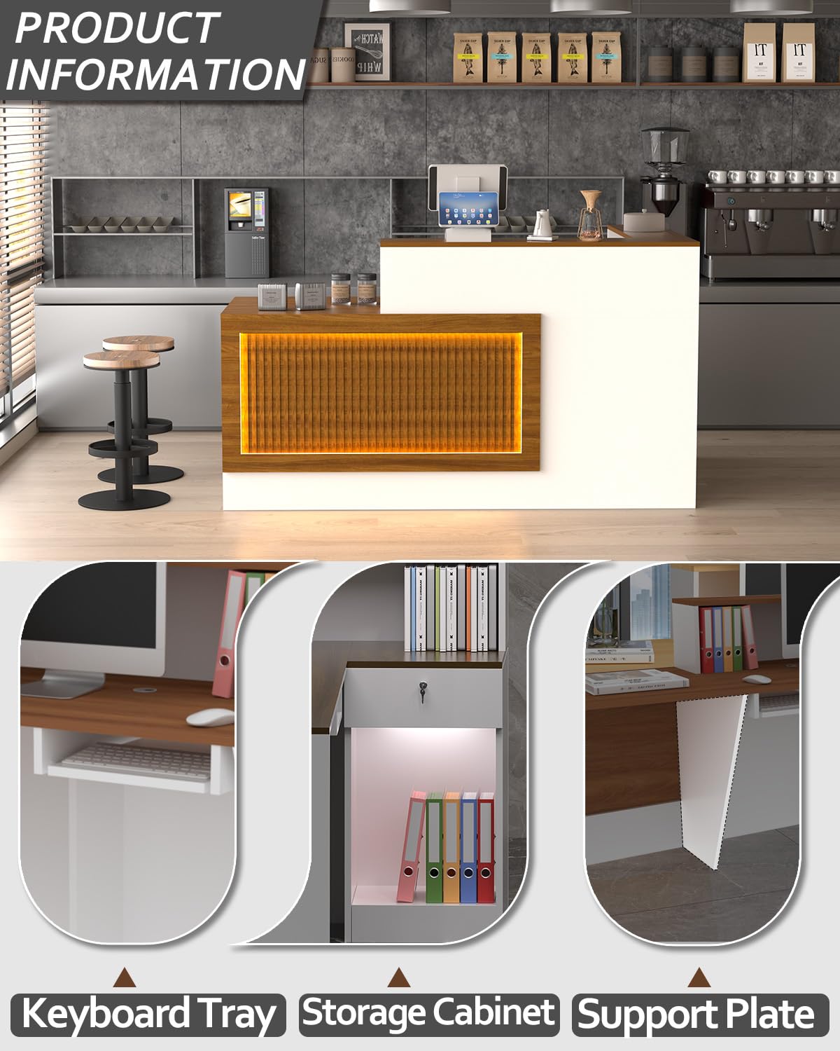 - MATERIAL: The modern reception desk with counter cashier counter selects multilayer board, thickened materials, receptionist desk with counter modern reception desk surface has excellent weather and water resistance for long-term use